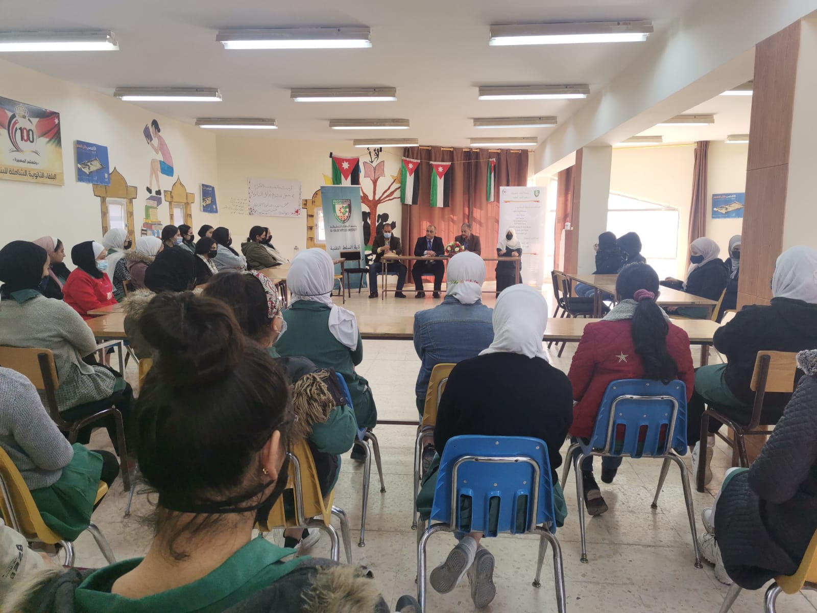 واستهدف اللقاء اليوم طالبات مدرسة البلقاء الثانوية الشاملة بحضور مديرة المدرسة الفاضله ميسون ابو رمان.