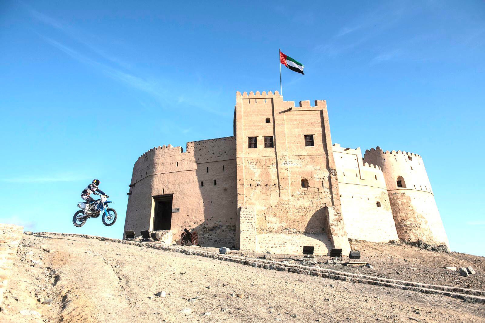 احتفالاً باليوبيل الذهبي لدولة الإمارات العربية المتحدة، قام محمد البلوشي، بطل سباق الدراجات النارية الإماراتي، ورياضي "ريد بُل" بجولة على دراجته يطوف فيها الإمارات السبع.