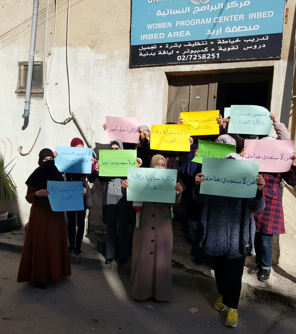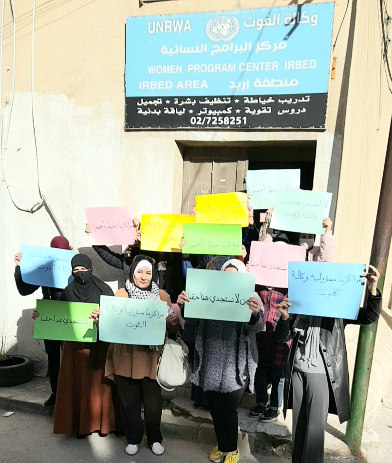 ﺇﻋﺎﺩﺓ ﺭﻓﻊ ﻋﻠﻢ الاونروا ﻋﻠﻰ ﻣﺮﺍﻛﺰ ﺍﻟﺘﻨﻤﻴﺔ ﺍﻟﻤﺠﺘﻤﻌﻴﺔ ﺍﻷﺭﺑﻊ ﻭﺍﻟﻌﺸﺮﻳﻦ ﻭﺫﻟﻚ ﺍﻋﺘﺒﺎﺭﺍً ﻣﻦ ﻳﻮﻡ ﺍﻻﺛﻨﻴﻦ ﺍﻟﻤﻮﺍﻓﻖ لليوم العاشر من شهر كانون الثاني "يناير " الحاليتنفيذ ﺍﻋﺘﺼﺎﻡ لجميع ﺍﻟﻌﺎﻣﻠﻴﻦ ﻓﻲ ﺍﻟﻤﺮﺍﻛﺰ ﻣﻦ ﺍﻟﺴﺎﻋﺔ ﺍﻟﺘﺎﺳﻌﺔ ﻭﺣﺘﻰ ﺍﻟﻌﺎﺷﺮﺓ ﺻﺒﺎﺣﺎً، ﺗﺮﻓﻊ ﻓﻴﻪ ﺍﻟﻴﺎﻓﻄﺎﺕ ﻭﺍﻟﺘﻮﺍﺻﻞ ﻣﻊ ﺍﻻﻋﻠﺎﻡ .ﻭﻛﺬﻟﻚ ﻭﻗﻒ ﺟﻤﻴﻊ ﺃﻧﻮﺍﻉ ﺍﻟﺘﻌﺎﻭﻥ ﺍﻻﺩﺍﺭﻱ ﻣﻊ ﻣﻮﻇﻔﻲ الاونروا ﺃﻭ ﺗﺰﻭﻳﺪﻫﻢ ﺑﺄﻱ ﺗﻘﺎﺭﻳﺮ ﺃﻭ ﻣﻌﻠﻮﻣﺎﺕ ﻭﺍﻟﻰ ﺍﺷﻌﺎﺭ ﺁﺧﺮ.
