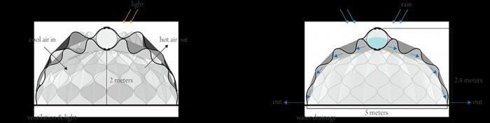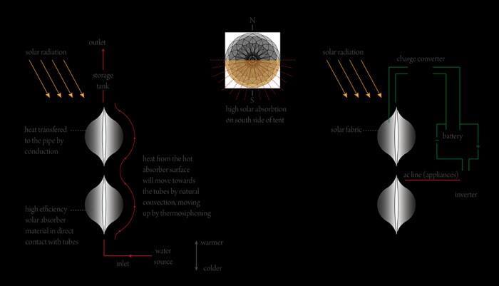 وشرحت المهندسة المعمارية عبير صيقلي عبر موقعها الإلكتروني الطريقة الهندسية والأدوات التي استخدمتها لبناء هذه الخيم الذكية , حيث قالت صيقلي إن هدف بناء هذا التصميم جاء في أعقاب الكوارث الطبيعية والحروب العالمية، التي أنتجت ملايين المشردين حول العالم , الذين لم يجدوا مكاناً يلجأون إليه سوى الخيم , إلا أن الخيم التقليدية لا توفر لهم أهم إحتياجاتهم ومتطلباتهم اليومية كالماء والكهرباء على عكس الخيم الجديدة التي تم تصميمها لتوفر الحرارة والمياه والكهرباء، وتخزنها ، لقاطني تلك الخيم , كما تتميز الخيمة بوزنها الخفيف الذي يسهل عملية حملها ونقلها من مكانٍ لآخر , بفضل النسيج الهيكلي الذي بُنيت منه .