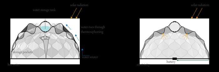 بلكي الإخباري تمكنت المهندسة الأردنية عبير صيقلي من تصميم خيمة تعتبر الأولى من نوعها , حيث أوجدت الصيقلي حلاً لمشكلة التزود بالطاقة الكهربائية داخل الخيم , فبإمكان هذه الخيمة ومن خلال تصميمها الهندسي المبتكر أن تمتص الطاقة الشمسية وتحولها لطاقة كهربائية يتم تخزينها في بطارياتٍ خاصة, وبالإضافة إلى ذلك فإنه بإمكان الخيمة جمع مياه الأمطار وتخزينها لاستخدامها فيما بعد .