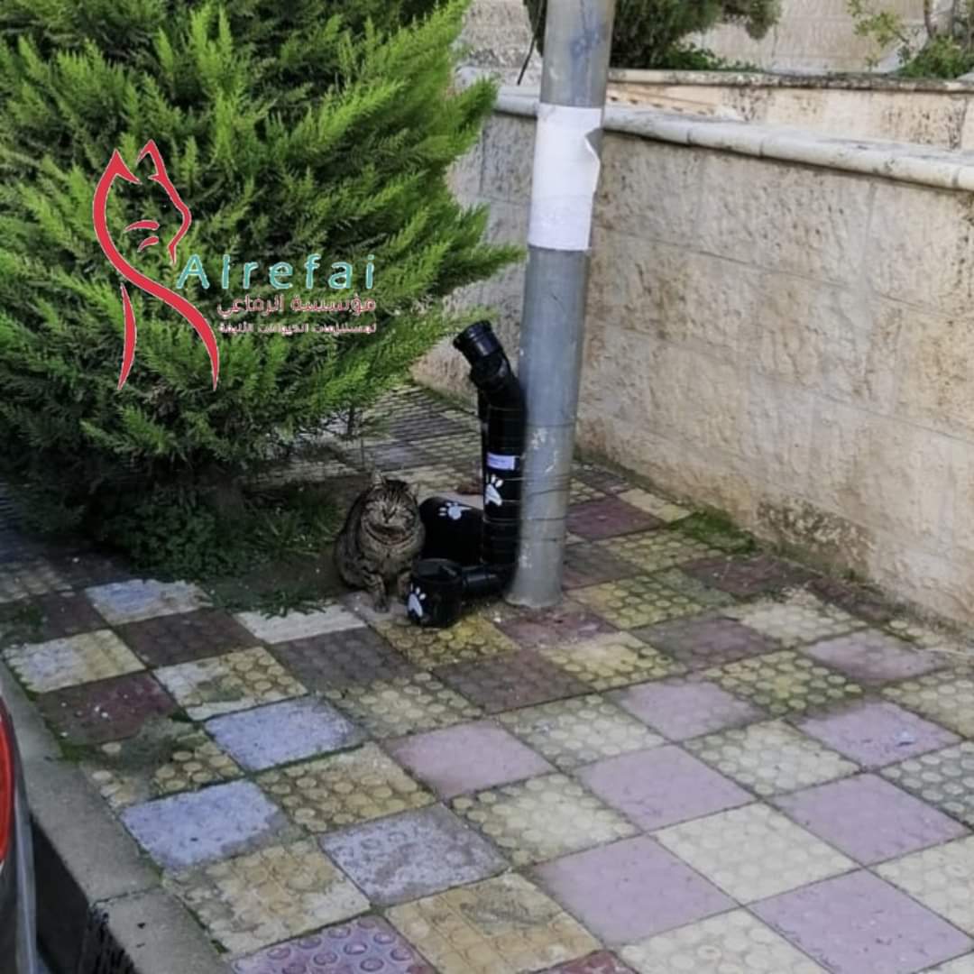 اطلق ناشطون مبادة للرفق بقطط الشوارع في الأردن، عبر تركيب محطات مياه وطعام في الشوارع.