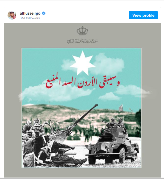 وأدرج سموه صورة مكتوب عليها، “سيبقى الأردن السد المنيع”.هالا اخبار