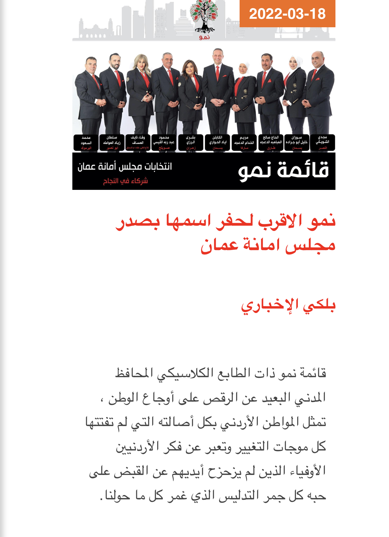 قائمة "نمو" تُحقق فوزا كبيرا في إنتخابات أمانة عمان وتحصل على أعلى الاصوات
