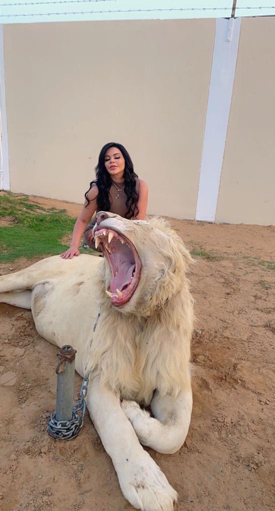 الناشطة الاردنية لارا العبداللات تداعب نمورا وأسودا.. صور