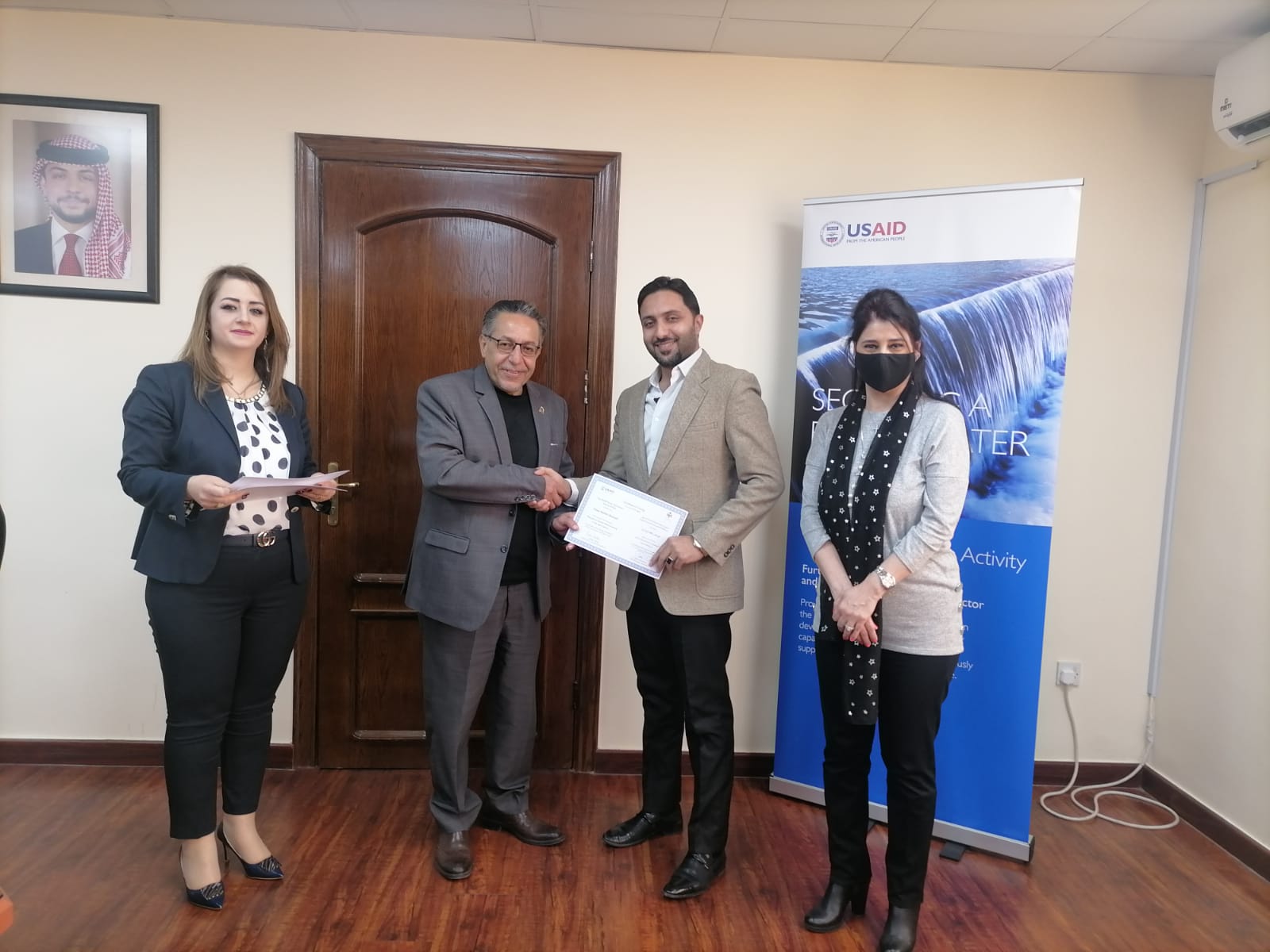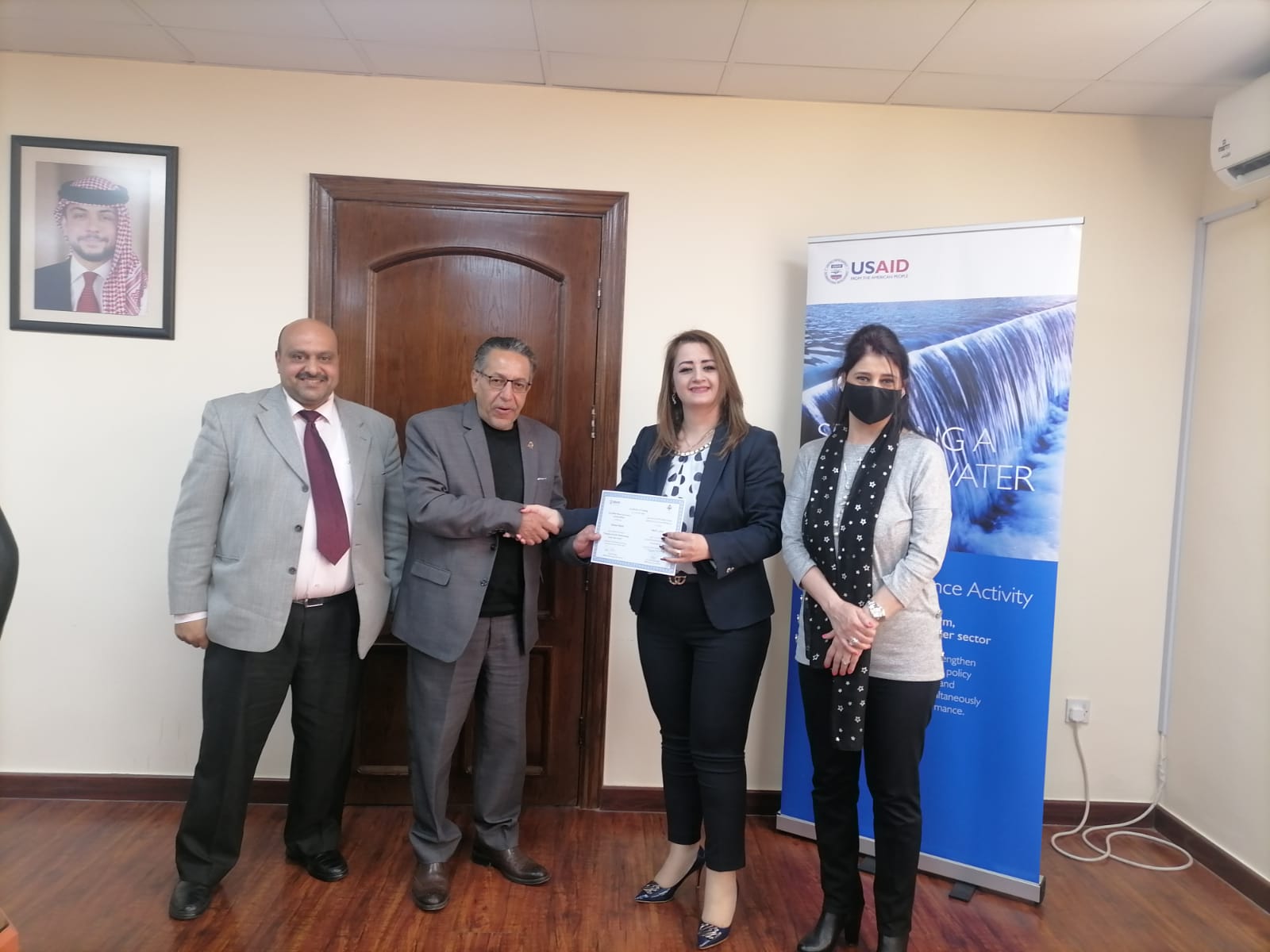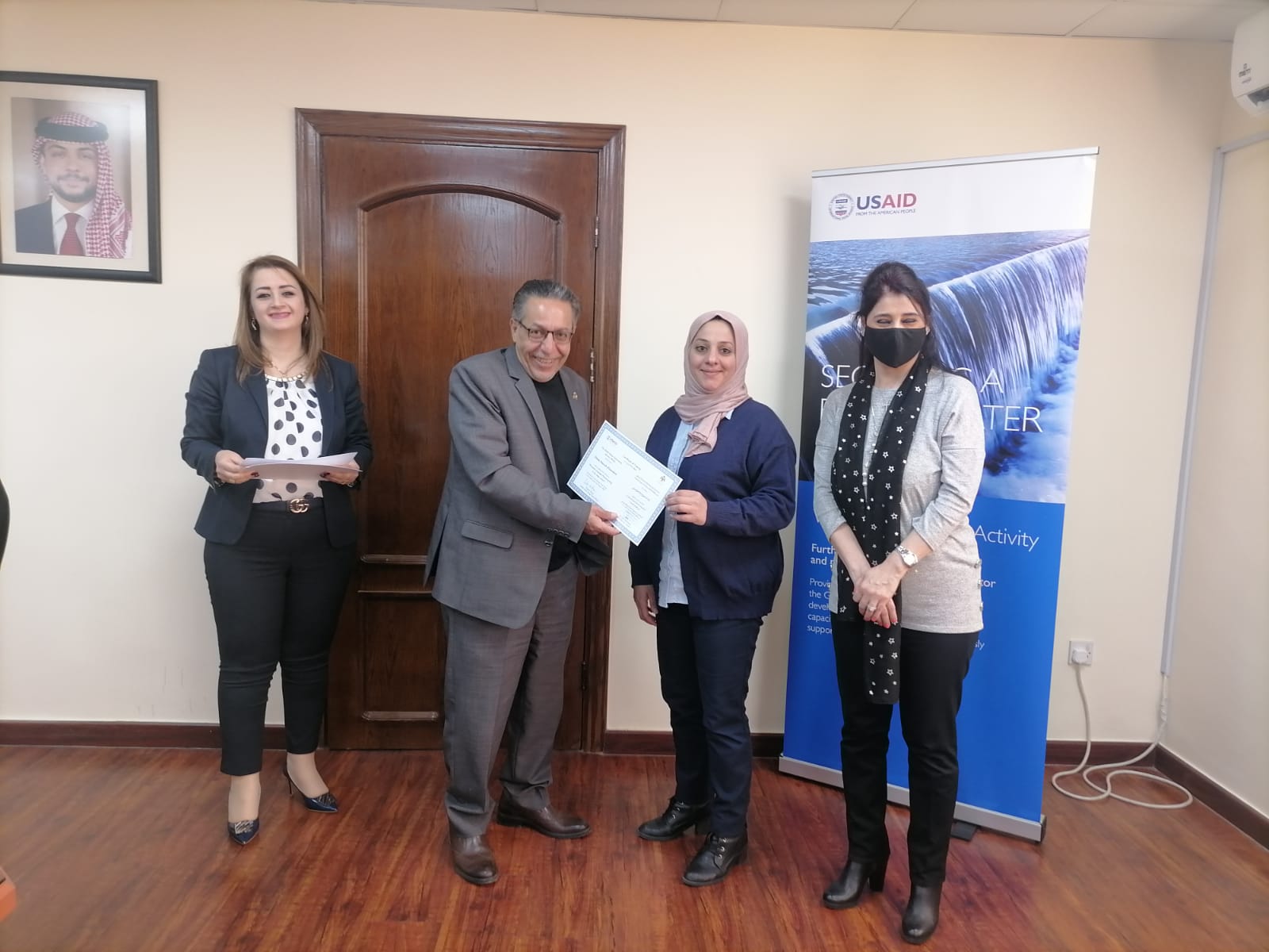 رعى امين عام وزارة المياه والري الدكتور جهاد المحاميد بحضور المساعد لشؤون الإدارية والمالية السيد محمد عفيشات الحفل التكريمي الذي اقامته وحدة دراسات المرأة في قطاع المياه للمشاركين والمشاركات في البرنامج التدريبي ل (اساسيات ادماج النوع الاجتماعي في قطاع المياه) الذي اقيم لفريق ادماج النوع الاجتماعي في قطاع المياه بتاريخ 8 اذار 2022 والذي نظمته وزارة المياه والري بالتعاون مع مشروع حوكمة قطاع المياه الممول من الوكالة الأميركية للتنمية الدولية ال USAID.