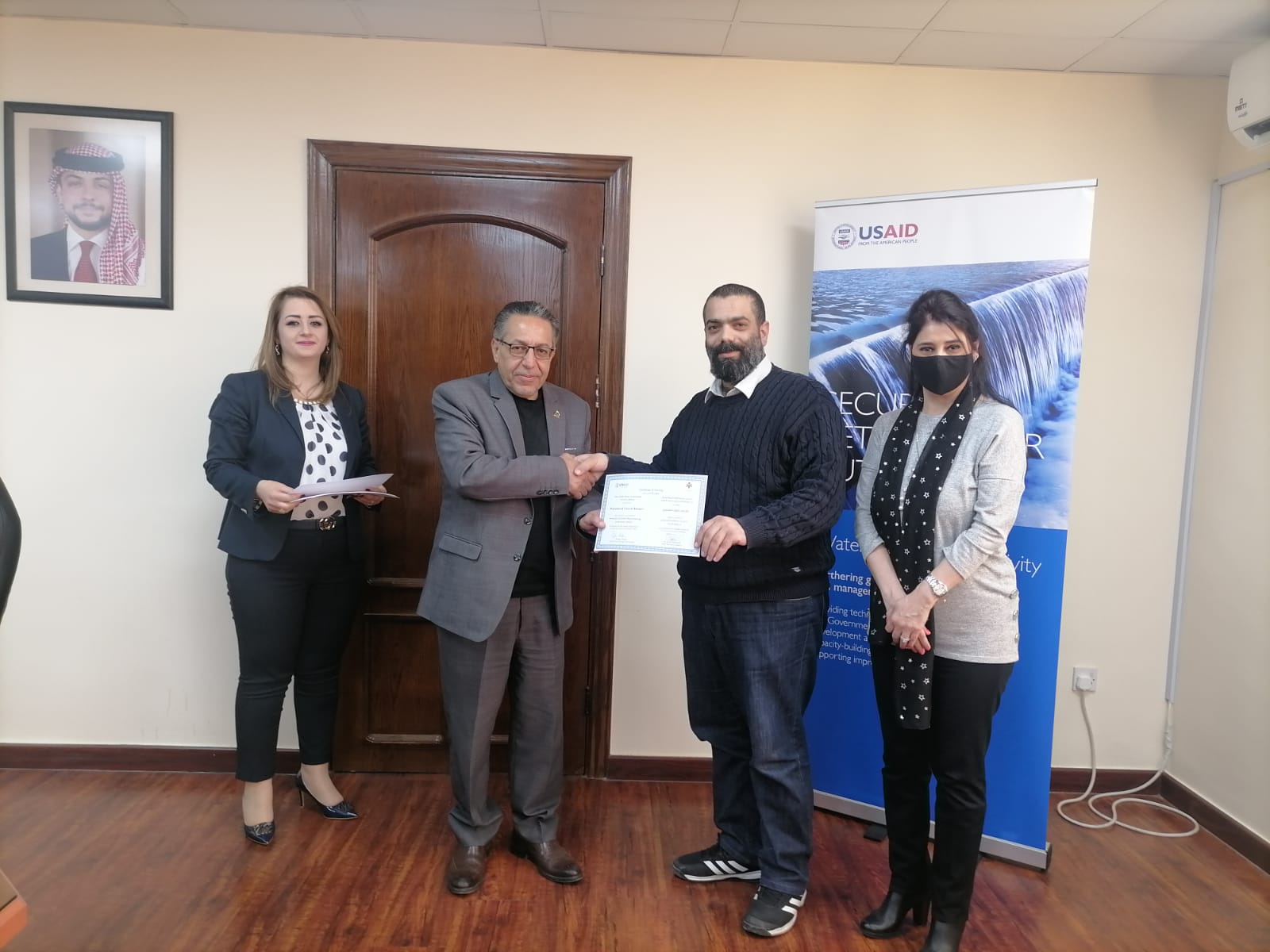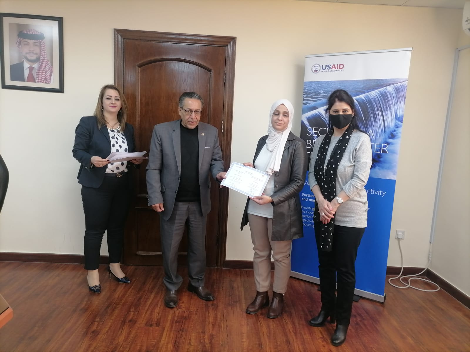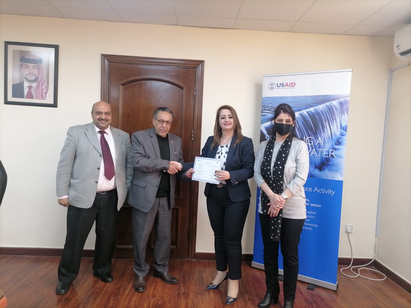 رعى امين عام وزارة المياه والري الدكتور جهاد المحاميد بحضور المساعد لشؤون الإدارية والمالية السيد محمد عفيشات الحفل التكريمي الذي اقامته وحدة دراسات المرأة في قطاع المياه للمشاركين والمشاركات في البرنامج التدريبي ل (اساسيات ادماج النوع الاجتماعي في قطاع المياه) الذي اقيم لفريق ادماج النوع الاجتماعي في قطاع المياه بتاريخ 8 اذار 2022 والذي نظمته وزارة المياه والري بالتعاون مع مشروع حوكمة قطاع المياه الممول من الوكالة الأميركية للتنمية الدولية ال USAID.