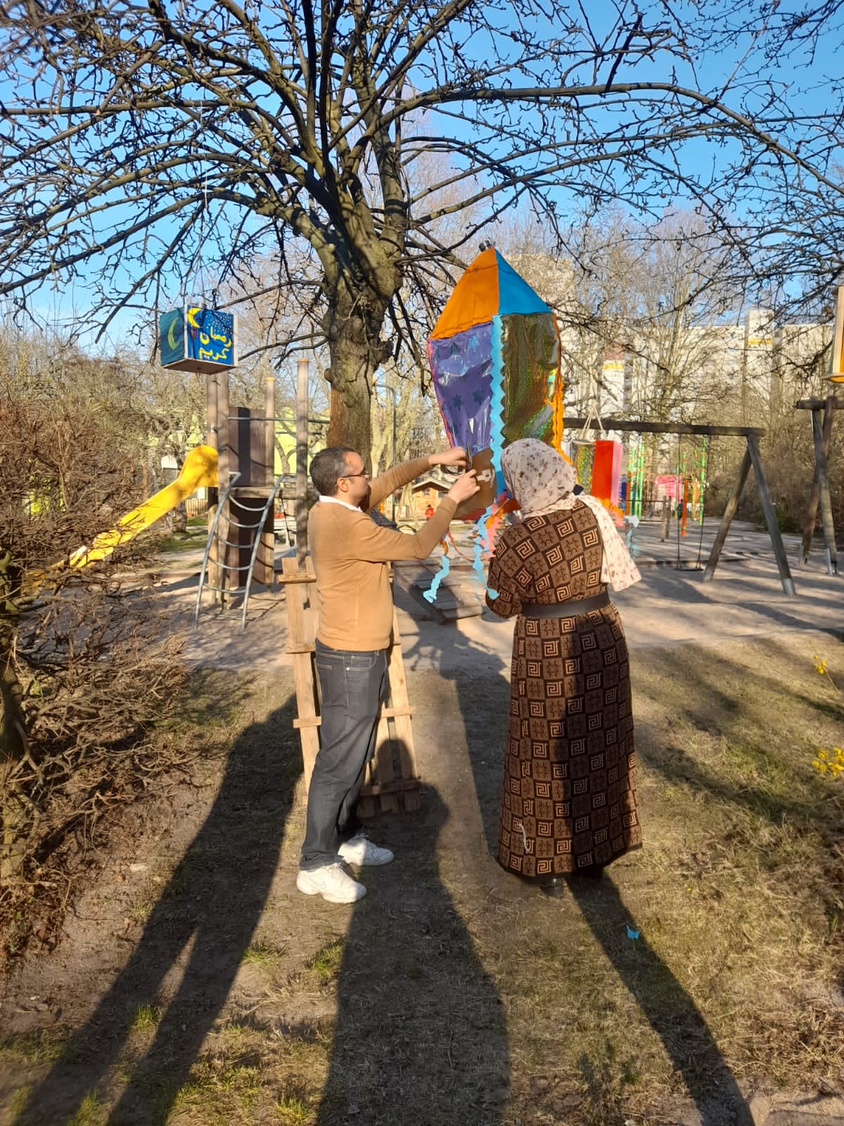 أمين عام الهيئة الأردنية الأوروبية العليا أ. مازن ابو زبيد رحب بالوفد المشارك برئاسة د. آيات نشوان ورافقهم خلال الورشة التي اشتملت على حوارات ونقاشات ومقابلة الجيران في الحي البرليني واسهامات لتجميل الحي والعاب وانشطة مختلفة مع اطفال المنطقة لاقت اعجابا واقبالا وحضورا ملفتا.