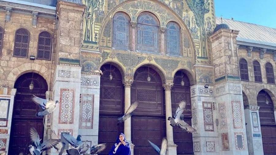 نسرين طافش تستقبل رمضان باطلالة مختلفة من مسجد بني أمية بدمشق ( شاهد )