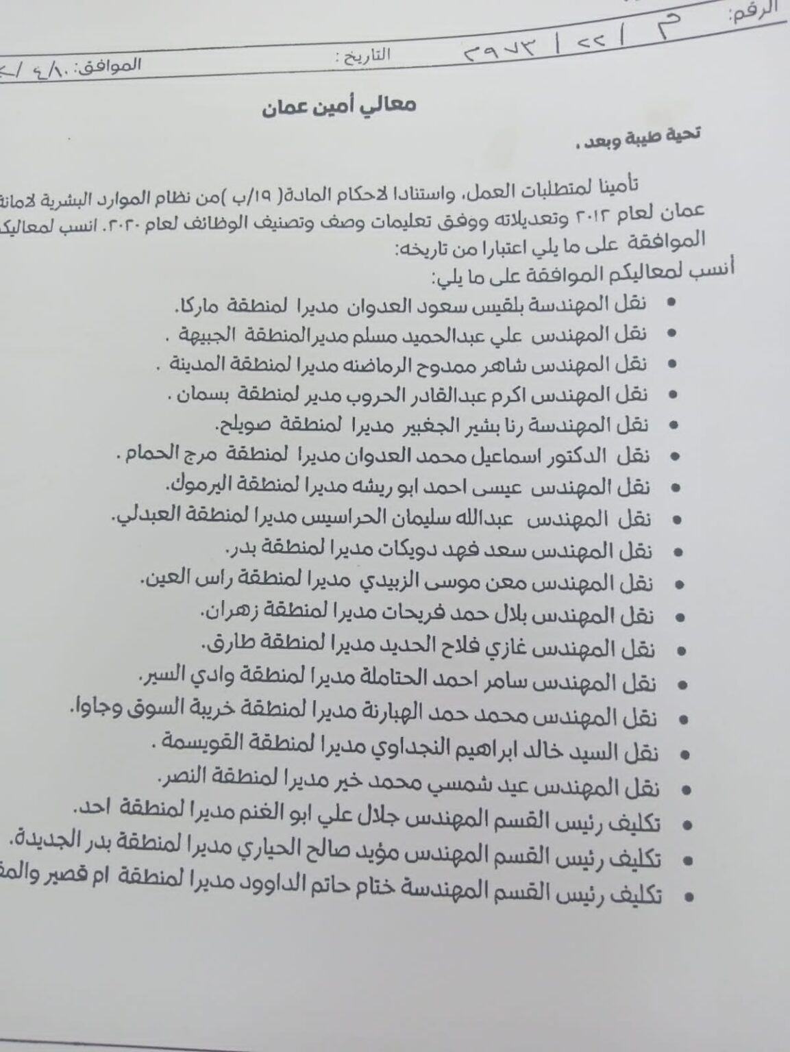 تنقلات وتكليفات في أمانة عمان - أسماء
