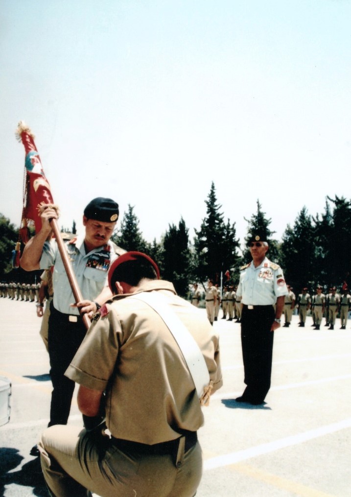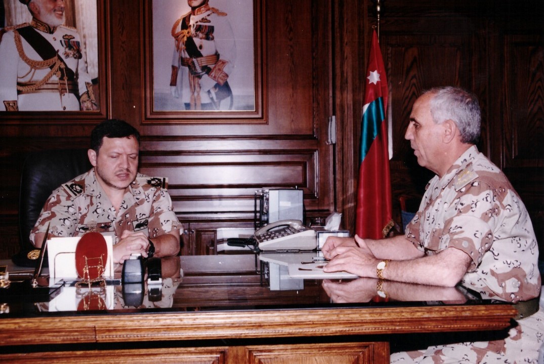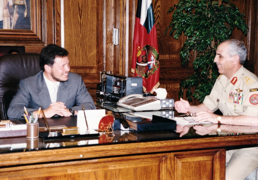 وبعدما عادت كتيبة القوات الخاصة التي كان يعمل فيها مساعداً لقائد الكتبية إلى الأردن من سلطنة عُمان بعد عامٍ تقريباً (نهاية عام 1975)، وخلال عملية إعادة تنظيم الكتيبة وتهيئتها لتواصل دورها العسكري المُشرّف في الوطن، حضر دون برنامج بروتوكولي ملكي جلالة المغفور له الملك الحُسين بن طلال طيّب الله ثراه كعادته عندما يريد أن يزور أو يتواصل مع إخوانه رِفاق السلاح، حيث حطت وعلى عجلٍ طائرته في (ميدان) الكتيبة، وهو يلبس (البورية) العسكرية الخمرية اللون، والتي ترمز لصناديد القوات الخاصة الملكية، ليطمئن جلالته رحمه الله على هؤلاء النشامى الذين عادوا من مهمّة السلام في سلطنة عُمان، وليقول لهم: (شكراً أنكم حملتم جنديتكم الأردنية معكم لبناء السلام في سلطنة عُمان الشقيقة)، وليستمع جلالته أيضاً من الجنرال الملكاوي بصفته مساعداً لقائد الكتيبة والضابط المناوب حينذاك إلى إيجاز عن عمل الكتيبة بعد عودتها وإعادة تنظيمها، والدور الوطني الأردني الذي قامت به في الشقيقة سلطنة عُمان.