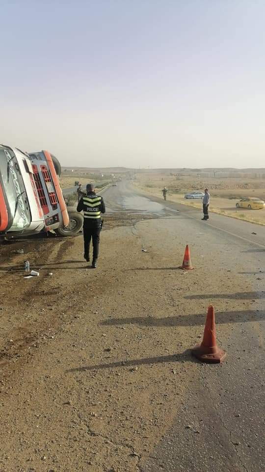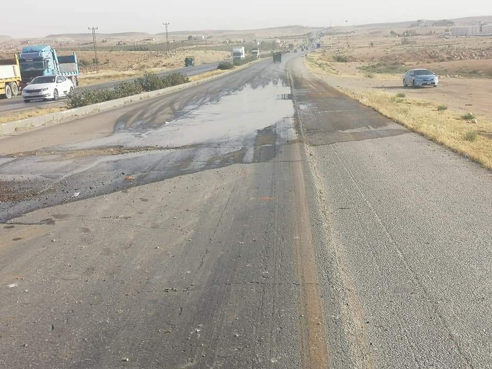 وأغلقت الدوريات الطريق مؤقتا على إثر الحادث حفاظاً على السلامة العامة بسبب وجود ماده الديزل والزيوت على الشارع العام وتحويل السير القادم من المفرق للطريق الترابي لحين إزالة مخلفات الحادث .