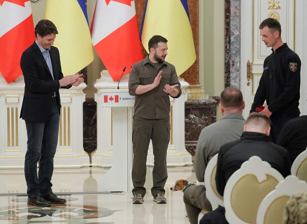 ومنح زيلينسكي الجائزة في مؤتمر صحافي في كييف مع رئيس الوزراء الكندي، جاستن ترودو، وسرعان ما أصبح باترون رمزًا للكلاب للوطنية الأوكرانية.