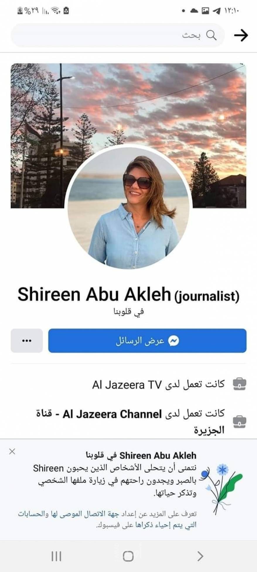 حول موقع التواصل الاجتماعي فيسبوك، صفحة الشهيدة الصحفية شيرين أبو عاقلة إلى ذكرى وهي السياسة التي يتم تطبيقها عقب إعلان وفاة شخص ما.