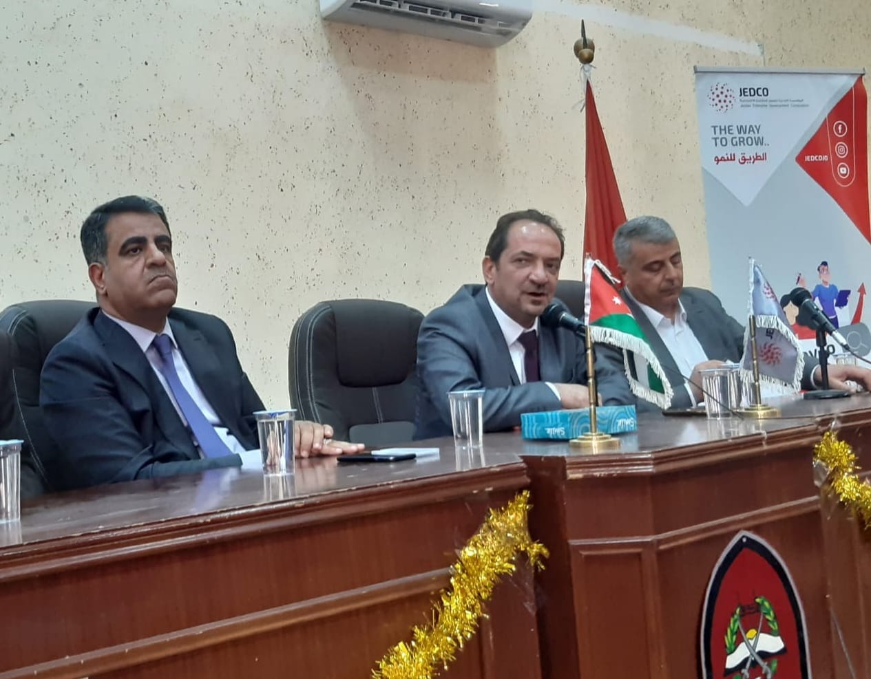 بحضور محافظ الكرك السيد محمد الفايز وعدد من نواب المحافظة التقى السيد عبدالفتاح الكايد المدير التنفيذي للمؤسسة الأردنية لتطوير المشاريع الاقتصادية يرافقه عدد من موظفي المؤسسة ممثلين عن القطاع الخاص وشباب المحافظة في مدرج جامعة مؤتة للتعريف ببرامج المؤسسة التي أطلقت حديثا حيث قدم موظفي المؤسسة شرحا عن كيفية الاستفادة من هذه البرامج والعمل على تحقيق اكبر فائدة منها حيث أجاب الكايد على استفسارات الحضور مؤكدا ان المشاريع التي تنشأ في المحافظات وذات ميزة نسبية تناسب اهل وطبيعة المحافظ لها الاولوية في الدعم ، وقد تركزت الاستفسارات من الحضور على طرق الحصول على الدعم المالي والفني.