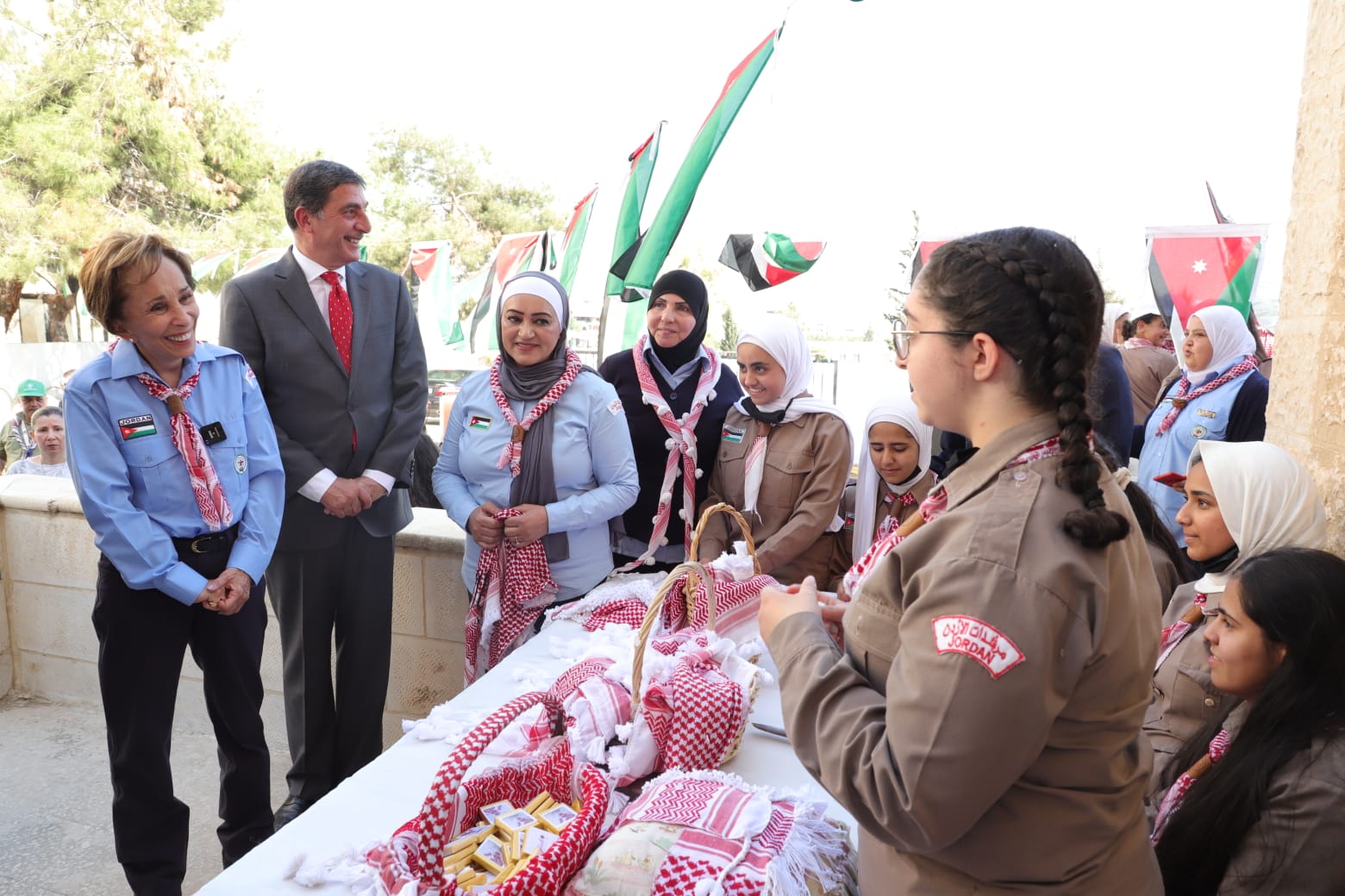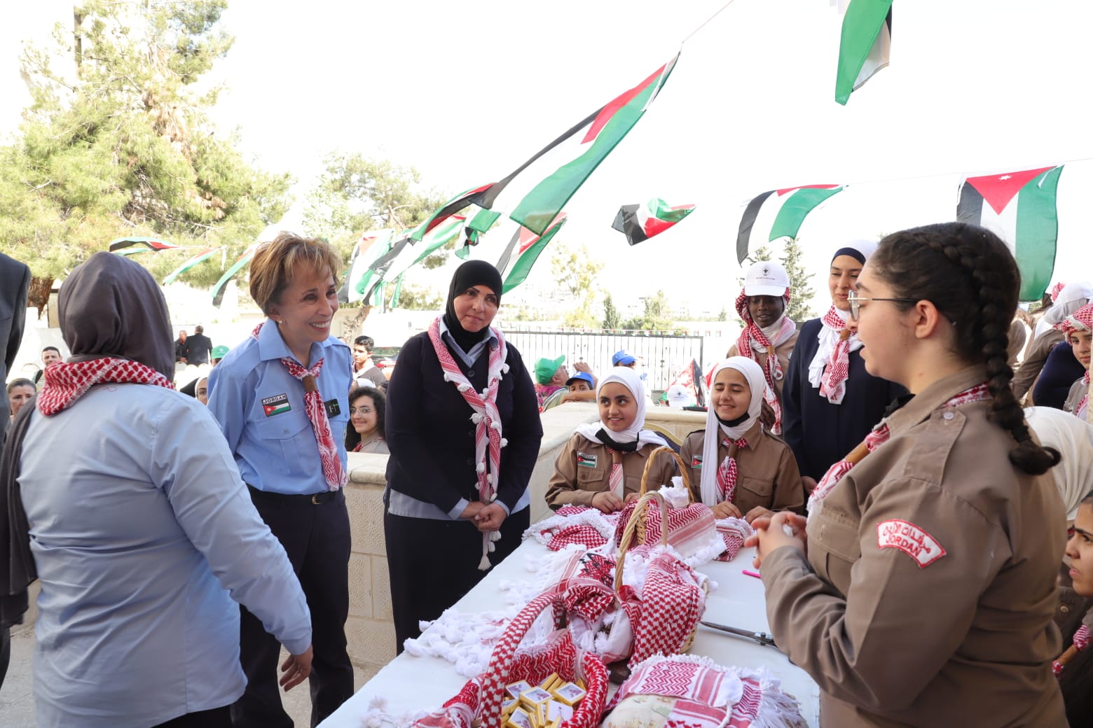وقدم عدد من متسبي الحركة الكشفية الاردنية مغناة " استقلالك يا أردن"، ونشيد الكشافة والمرشدات، كما حضرت سموها جانبا من ورشة عمل لاعضاء الحركة حول النظم الايكولوجية والبيئية في الاردن، ورشة عمل حول تهديب الشماغ الاردني.