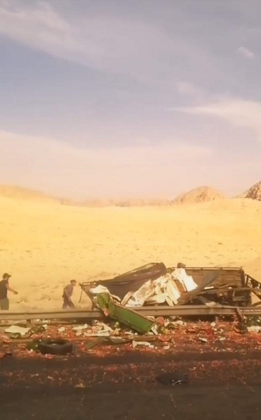 وقال المصدر إن الحادث وقع بين شاحنات عدد 2 "تريلات" مع ديانة محملة بالبطيخ، مشيرا الى انه نتج عن الحادث اصابتين تم نقلهم الى مركز القويرة، وتحويل حركة السير من قبل الدوريات الخارجية.