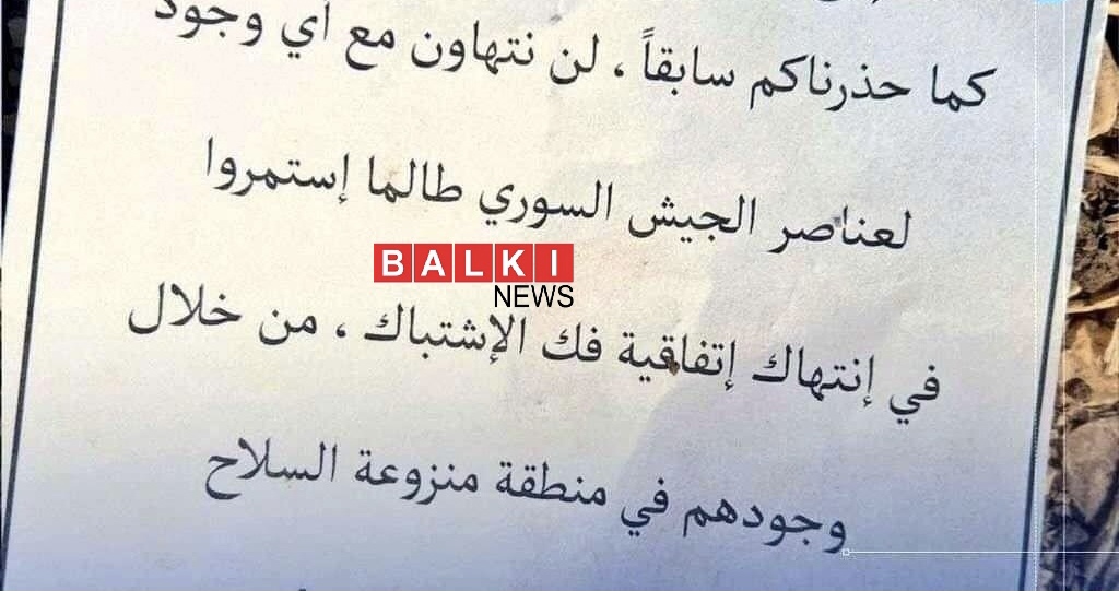 وجاء في المنشورات "إلى قادة الجيش السوري! كما حذرناكم سابقًا، لن نتهاون مع أي وجود لعناصر الجيش السوري طالما استمروا في انتهاك اتفاقية فض الاشتباك، من خلال وجود في منطقة نزع السلاح".