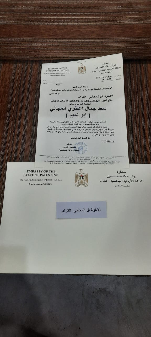محمود عباس يعرب عن تعازيه لسعد الابن جندي المجالي الوطني