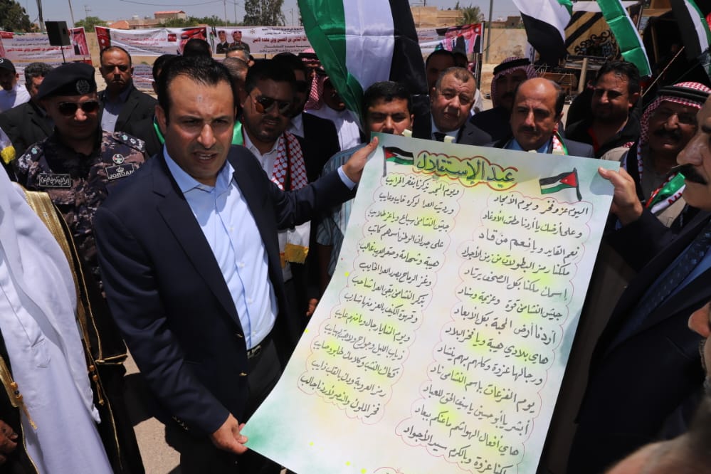 بدوره، بين رئيس بلدية الحسين بن عبدالله، وصفي الشرعة أننا نعتز ونفتخر بذكرى الاستقلال؛ الذي يعني الاستقرار والشموخ، ونرفع بهذه المناسبة أسمى آيات التهنئة والتبريك لجلالة الملك وولي عهده والشعب الأردني، معتزين بالإنجازات الكبيرة التي تحققت خلال مسيرة الاستقلال رغم الظروف الاقتصادية الصعبة.