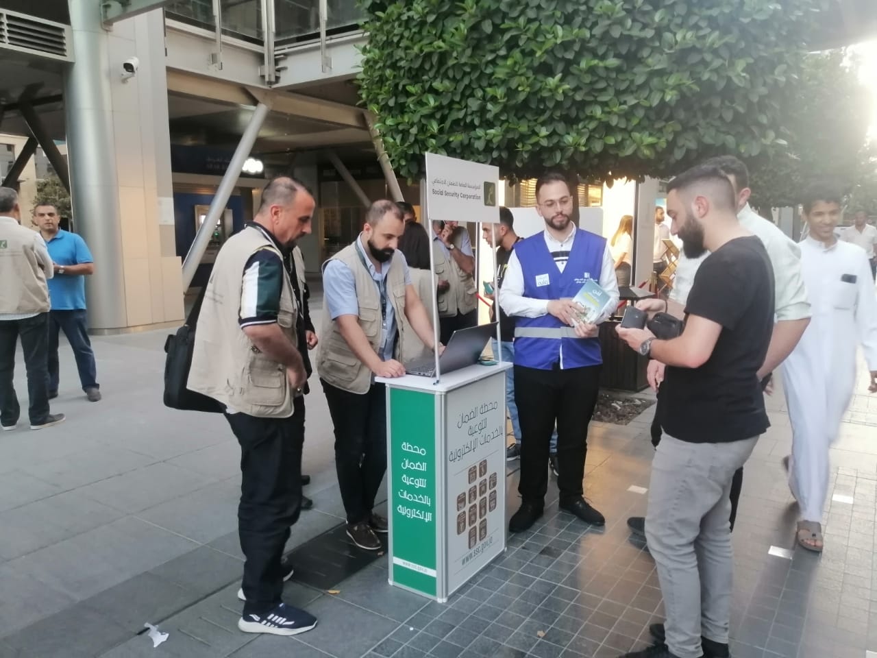 نفذت المؤسسة العامة للضمان الاجتماعي اليوم الأول من خدمة "أنت تسأل والضمان يُجيب" من الميدان في عدد من مناطق العاصمة عمان لتوعية جمهورها بأهمية الضمان الاجتماعي والاشتراك الاختياري وكافة المواضيع التأمينية الأخرى بما فيها احتساب الرواتب التقاعدية، وكذلك خدماته المتعلقة ببرنامج تقسيط للمتقاعدين وتحديث بياناتهم وخدمة DAMAN PAY لتسديد الاشتراكات وخدمة آيبانك وبرنامج رعاية للسرطان.