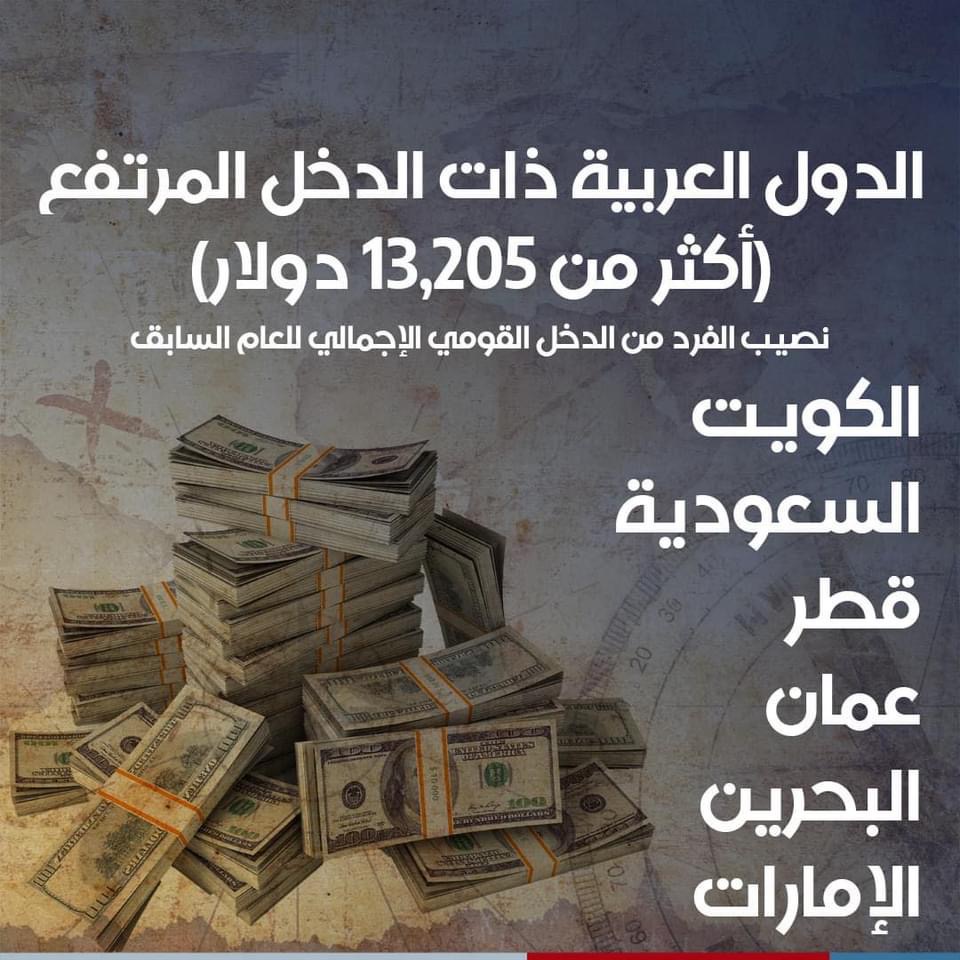ومن الدول العربية ذات الدخل المرتفع كانت الإمارات، السعودية، قطر، البحرين، الكويت وعمان.