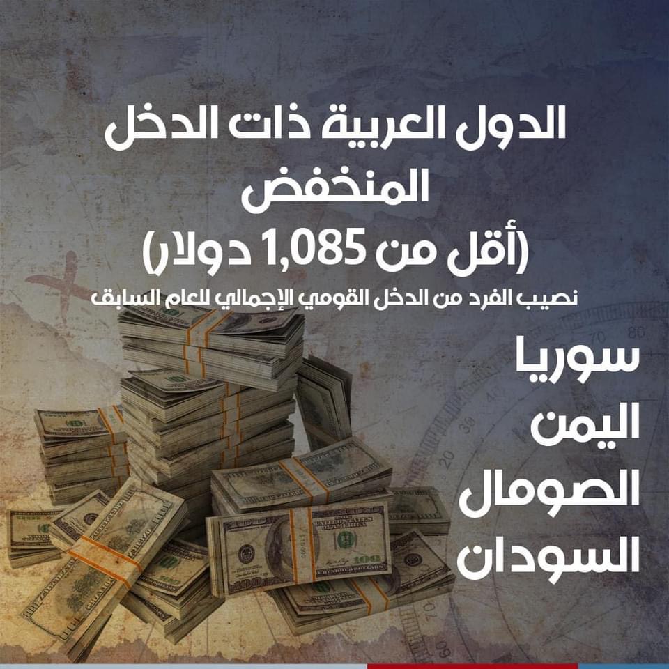 أما سوريا، اليمن، السودان، والصومال فصنفت تحت فئة دول الدخل المنخفض.
