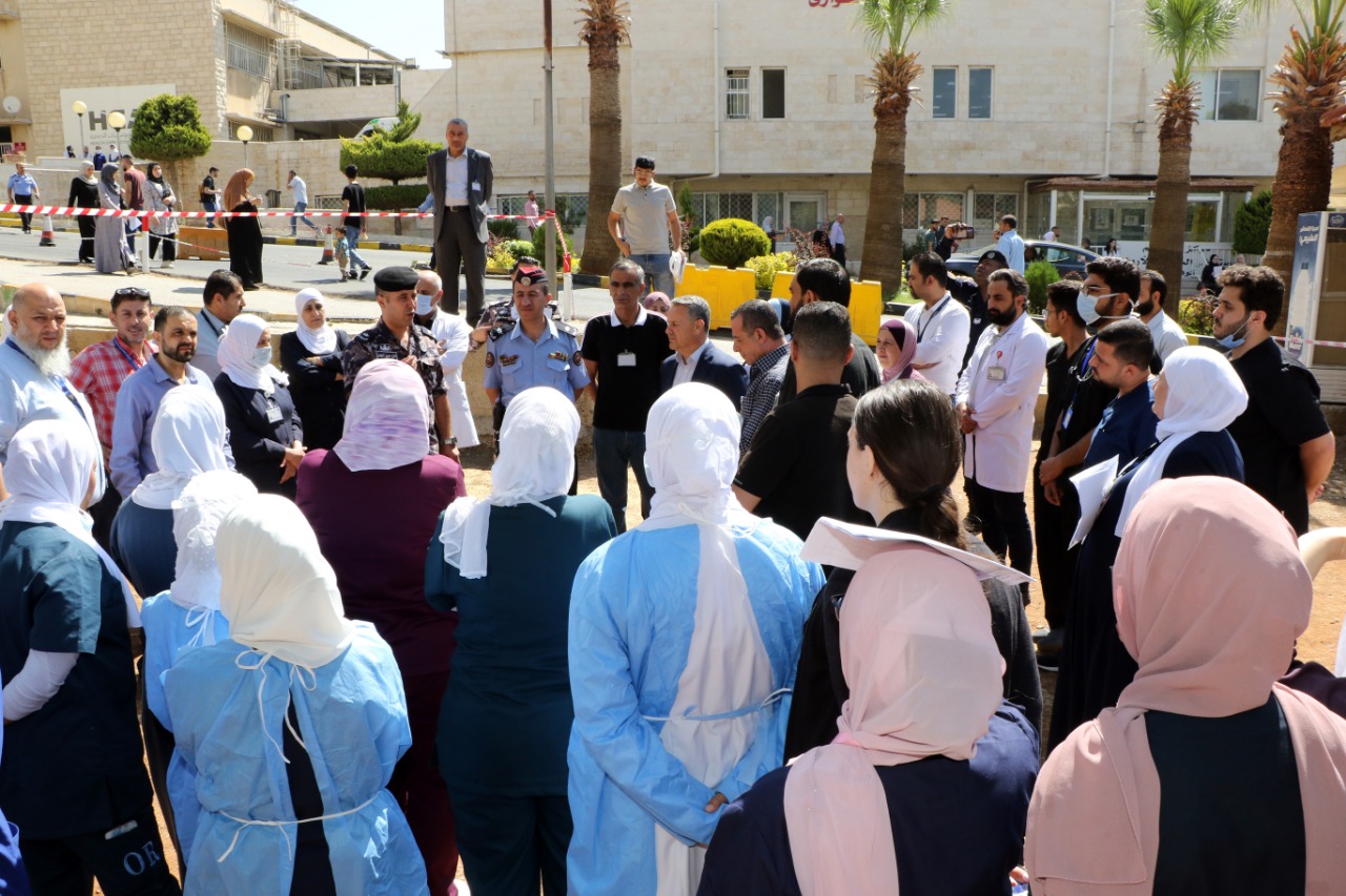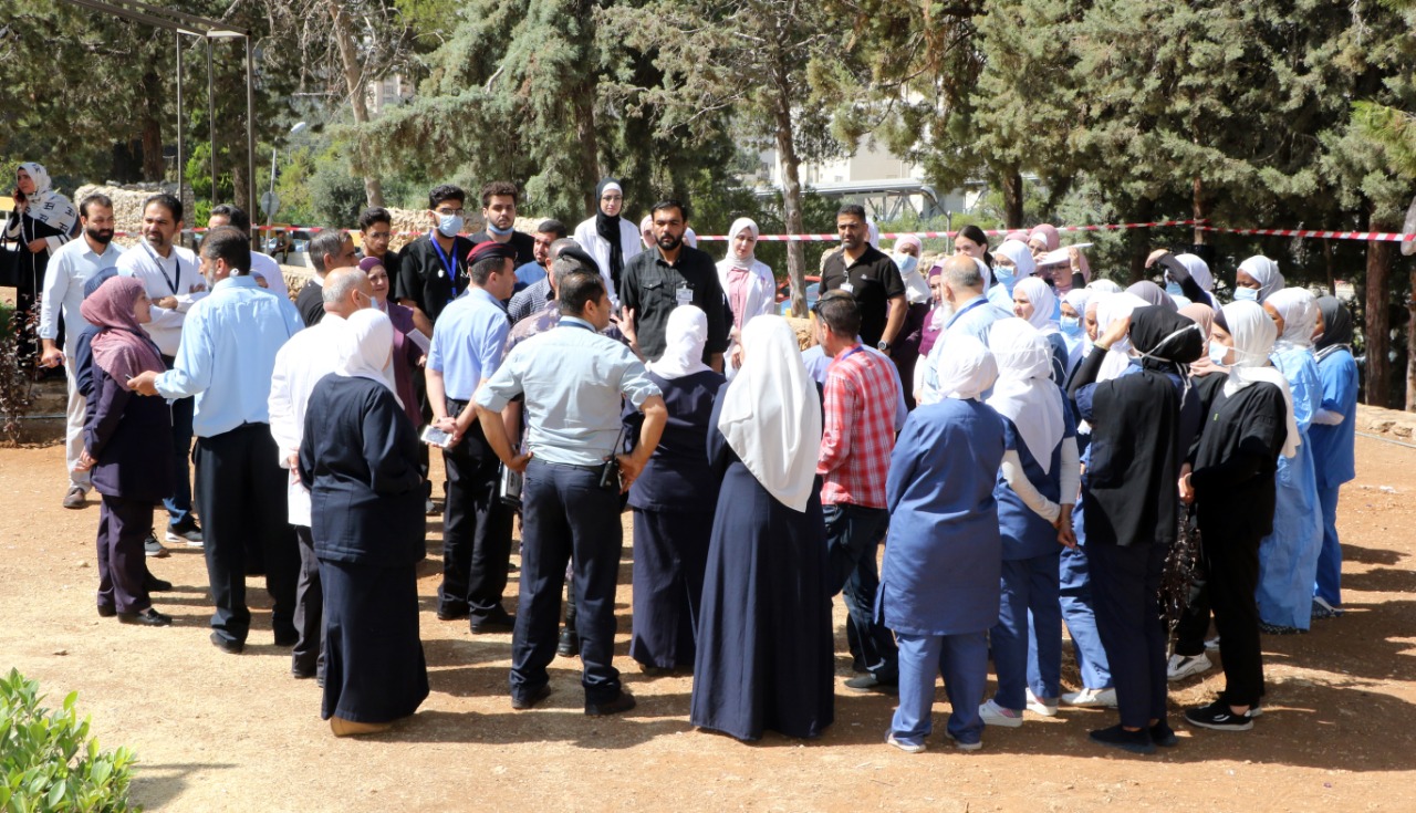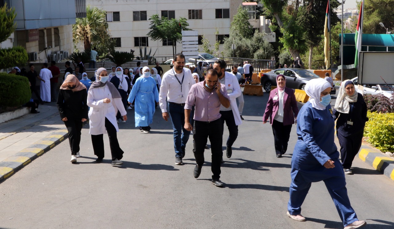 بالتعاون مع الدفاع المدني مستشفى الجامعة الأردنيّة يُنفّذ تمرين إخلاء وهمي في مبنى التوليد وحديثي الولادة