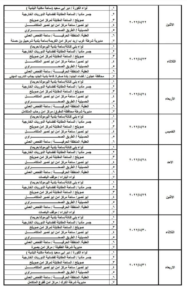 وستكون ساعات الدوام للترخيص المتنقل من يوم الأحد ولغاية يوم الأربعاء من الساعة 8:00 صباحاً وحتى الساعة 2:00 ظهراً، ويوم الخميس من الساعة 8:00 صباحاً ولغاية الساعة 1:00 ظهراً .