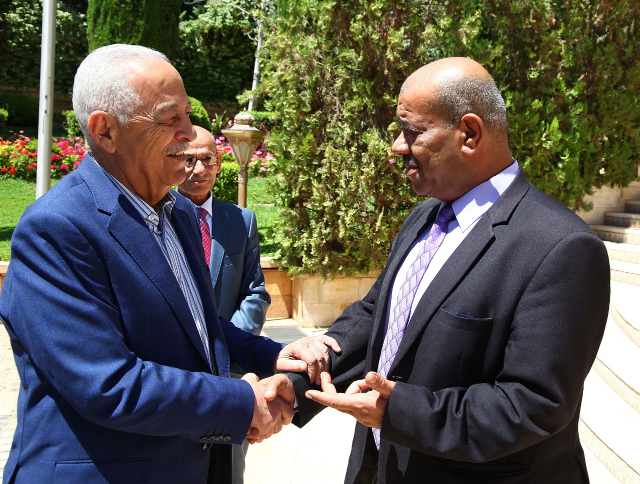 معالي رئيس الديوان الملكي الهاشمي السيد يوسف حسن العيسوي يلتقي مجموعة من وجهاء وشيوخ مدينة سحاب برئاسة السيد عواد نواف ابو زيد يوم السبت الموافق 13-8-2022 في قصر بسمان الزاهر .