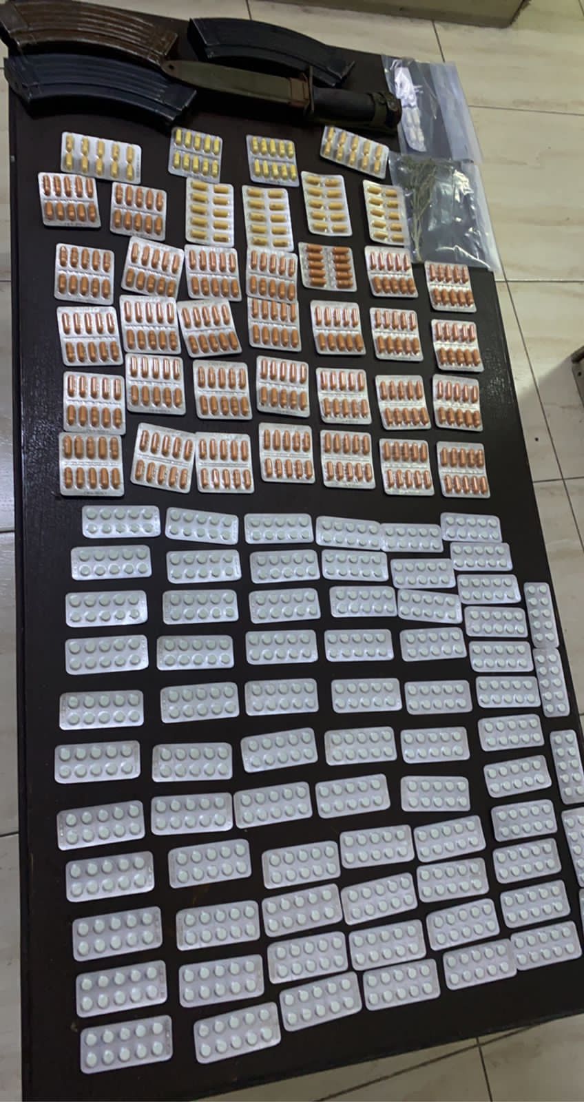 وفي مداهمة أخرى القى العاملون في إدارة مكافحة المخدرات القبض على مطلوب بتجارة المواد المخدرة بعد تحديد مكانه، حيث ضبط بحوزته كمية كبيرة من الحبوب المخدرة .