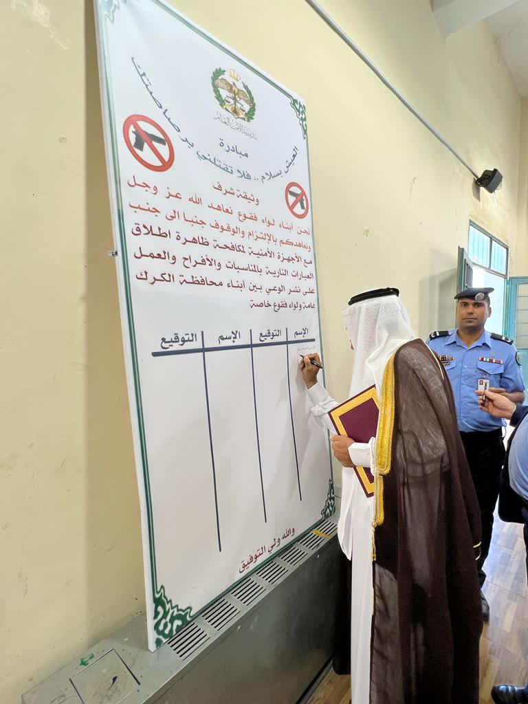 ووقع الحضور من أعضاء المجلس الامني المحلي وأبناء المجتمع المحلي خلال حفل إطلاق المبادرة على وثيقة شرف للالتزام بعدم إطلاق العيارات النارية في المناسبات والأفراح.