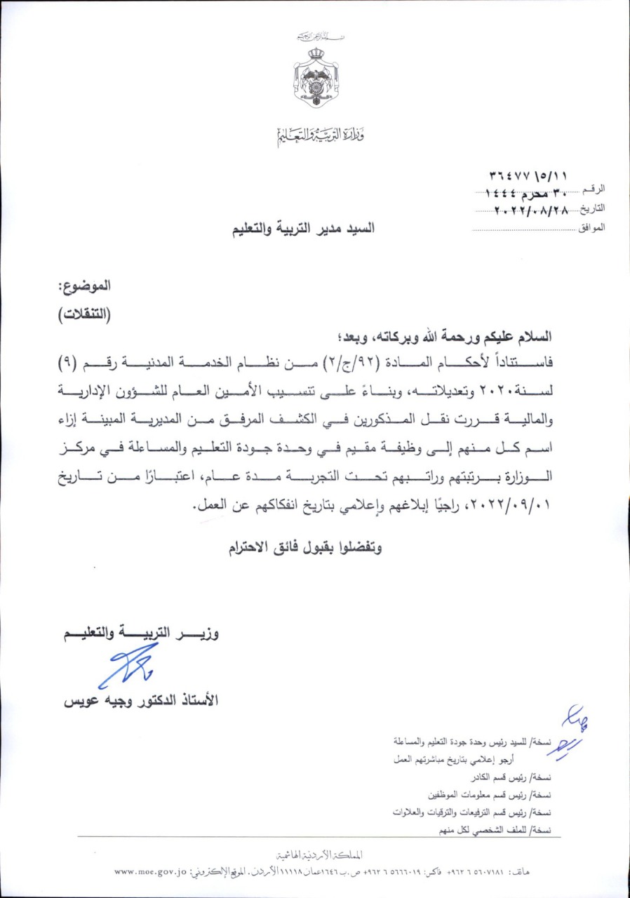 وتأتي التنقلات، استنادا لأحكام المواد (89، 92، 181) من نظام الخدمة المدنية رقم (9) لسنة 2020 وتعديلاته.