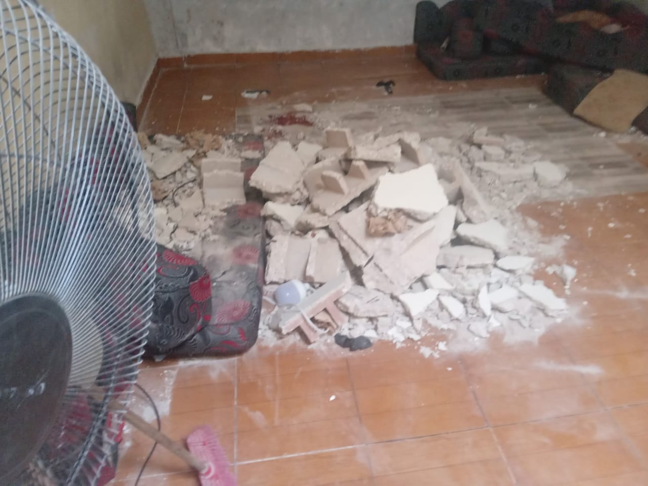 الدبوبي يتفقد منزل بمخيم البقعة تعرض لانهيار بالسقف