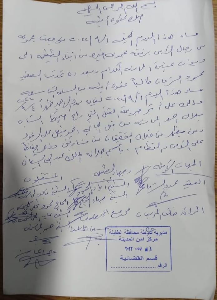طالب والد الشاب الذي ارتكب جريمة قتل، الخميس الماضي، في الطفيلة، بإعدام ابنه وبأسرع وقت ممكن.