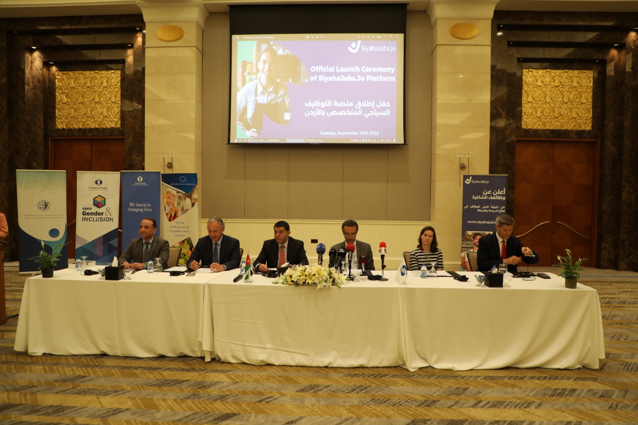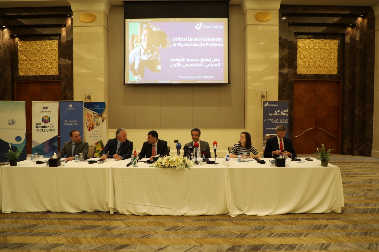 اطلقت جمعية المطاعم السياحية الأردنية، والمجلس الوطني لمهارات قطاع السياحة والضيافة، والبنك الأوروبي لاعادة الاعمار والتنمية، في عمان، اليوم الأحد، المنصة الاولى للتوظيف بالقطاع السياحي www.siyahajobs.jo، خلال حفل أُقيم، تحت رعاية وزيري السياحة والآثار نايف الفايز، والعمل نايف استيتية.