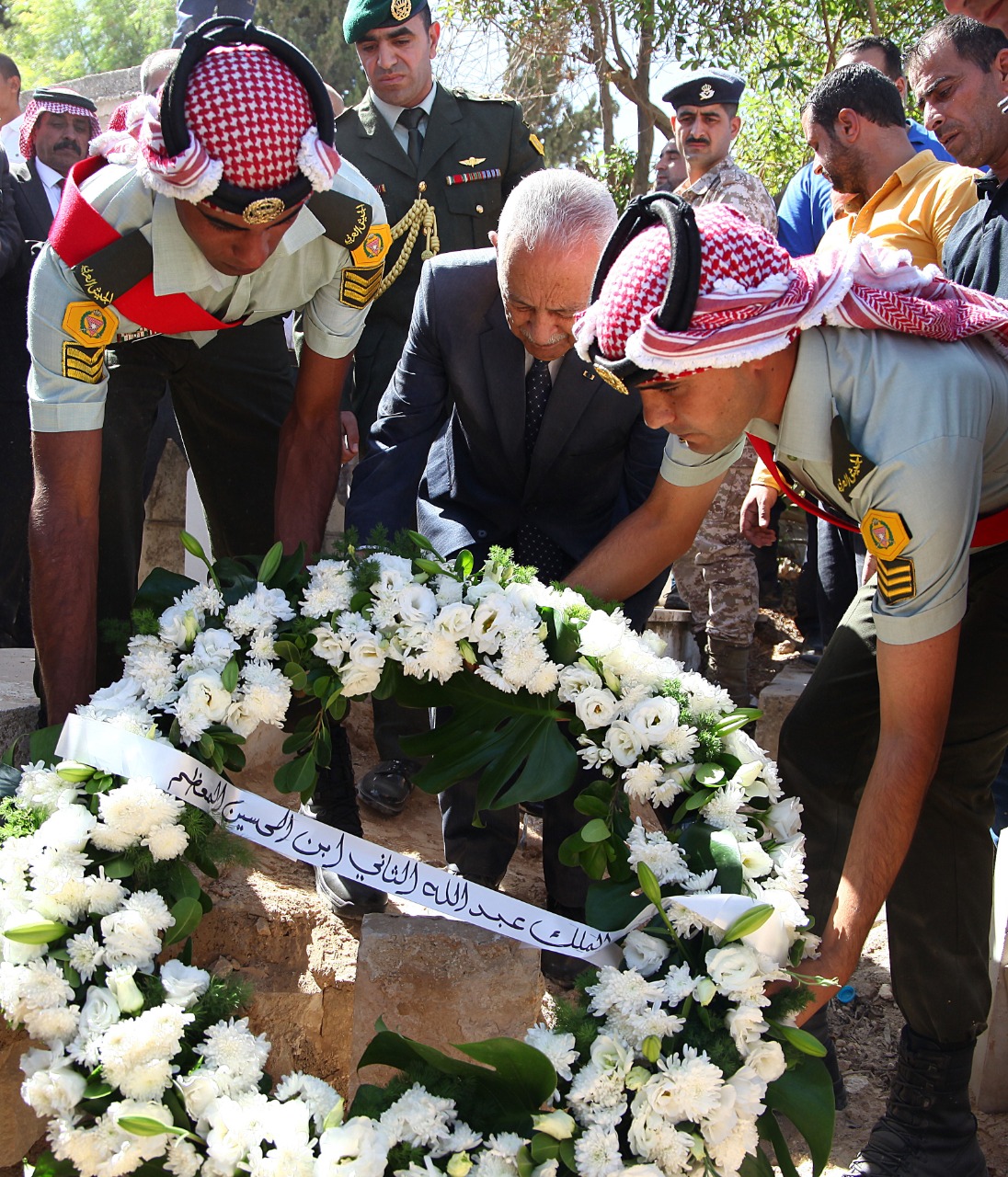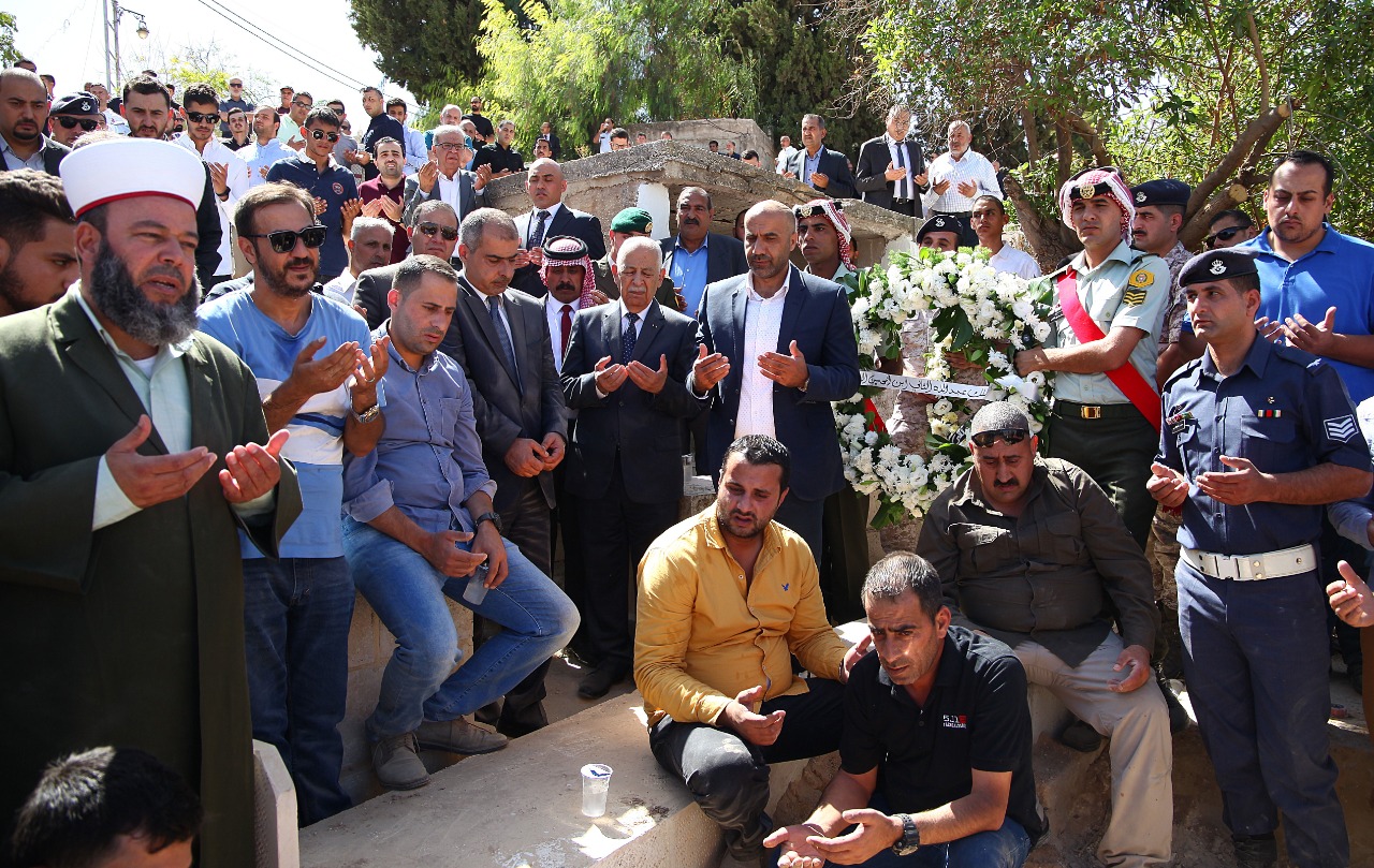 مندوبا عن جلالة الملك عبد الله الثاني بن الحسين المعظم حفظه الله ورعاه معالي رئيس الديوان الملكي الهاشمي السيد يوسف حسن العيسوي يقدم واجب العزاء لذوي المرحوم فتحي الحياصات والد العميد الطيار محمد الحياصات قائد سلاح الجو الملكي الأردني في مقبرة العيزرية بمحافظة السلط يوم الخميس ٢٩/٩/٢٠٢٢