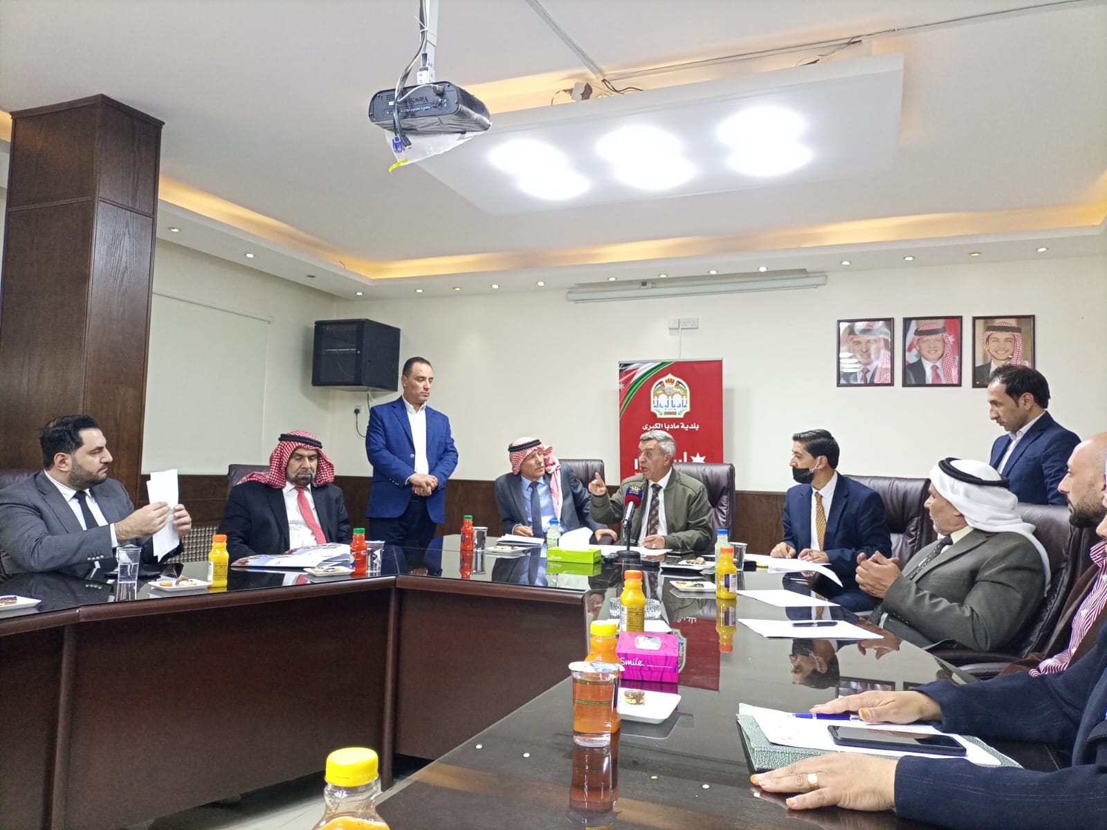 من جهته قدم محافظ مادبا نايف الهدايات، إيجازا عن ميزات المحافظة بموقعها المتوسط وطابعها السياحي، مؤكدا أن هناك تنسيقا وتعاونا تاما مع مجلس المحافظة لإعداد وتنفيذ مشاريع خدمية وتنموية.