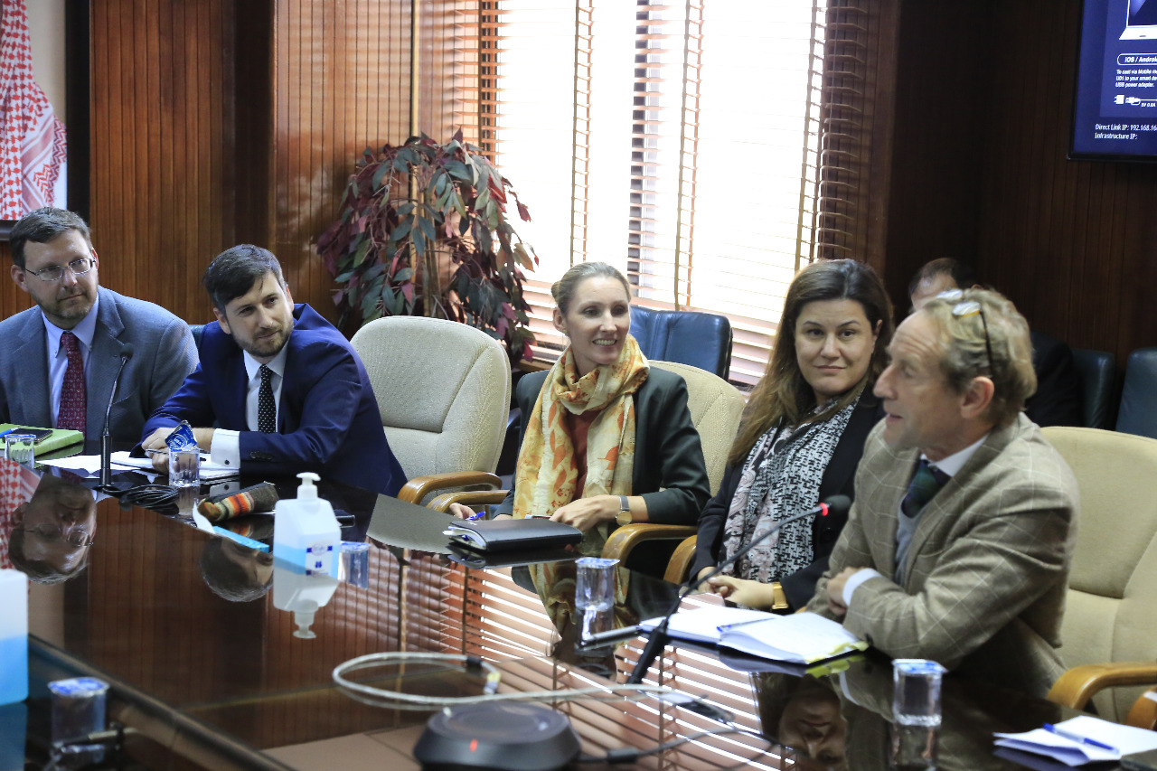اجتمع وزير المياه والري المهندس محمد النجار خلال اجتماع في مكتبه بوزارة المياه والري اليوم الثلاثاء مع ممثلي الجهات المانحة والتمويلية لقطاع المياه والمهتمة بتقديم الدعم المالي لمشروع الناقل الوطني ، الوكالة الامريكية للتنمية الدولية USAID والاتحاد الأوروبي EU ، بنك الاعمار الألماني KFW ،بنك الاستثمار الأوروبي EIB وأعضاء من السفارة الألمانية، المعهد الفيدرالي الألماني BGR ، الوكالة الفرنسية للتنمية ِAFD وجهات أخرى بحضور امين عام وزارة المياه والري د. جهاد المحاميد وأمين عام سلطة وادي الأردن م. منار محاسنة وامين عام سلطة المياه بالوكالة م. رامي أبو رواق وكبار المساعدين في قطاع المياه مستعرضا الجهود والإجراءات التي يقوم بها قطاع المياه بالتعاون مع كافة المعنيين والجهود المضنية التي تبذل لمواجهة مختلف التحديات والسير قدما بتحديث وتطوير الاستراتيجية الوطنية لقطاع المياه واستراتيجية خفض الفاقد المائي ومشروع الناقل الوطني والتنسيق بين مختلف الجهات التمويلية والمانحة .