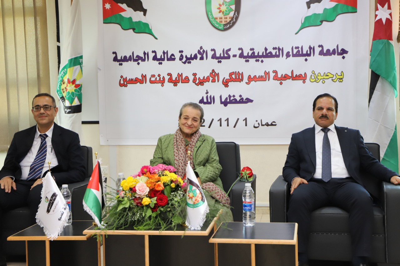 كما عبر عميد الكلية الأستاذ الدكتور ناجي السعايدة عن الفرحة العارمة التي عمت الكلية التي تتشرف بحمل اسم صاحبة السمو الملكي الأميرة عالية بنت الحسين المعظمة، وسعادة وامتنان أسرة الكلية بهذه الزيارة التي تعبر عن حرص الهاشميين بالعلم والتعليم، ومتابعة الطلبة والاستماع إليهم في مواقعهن.