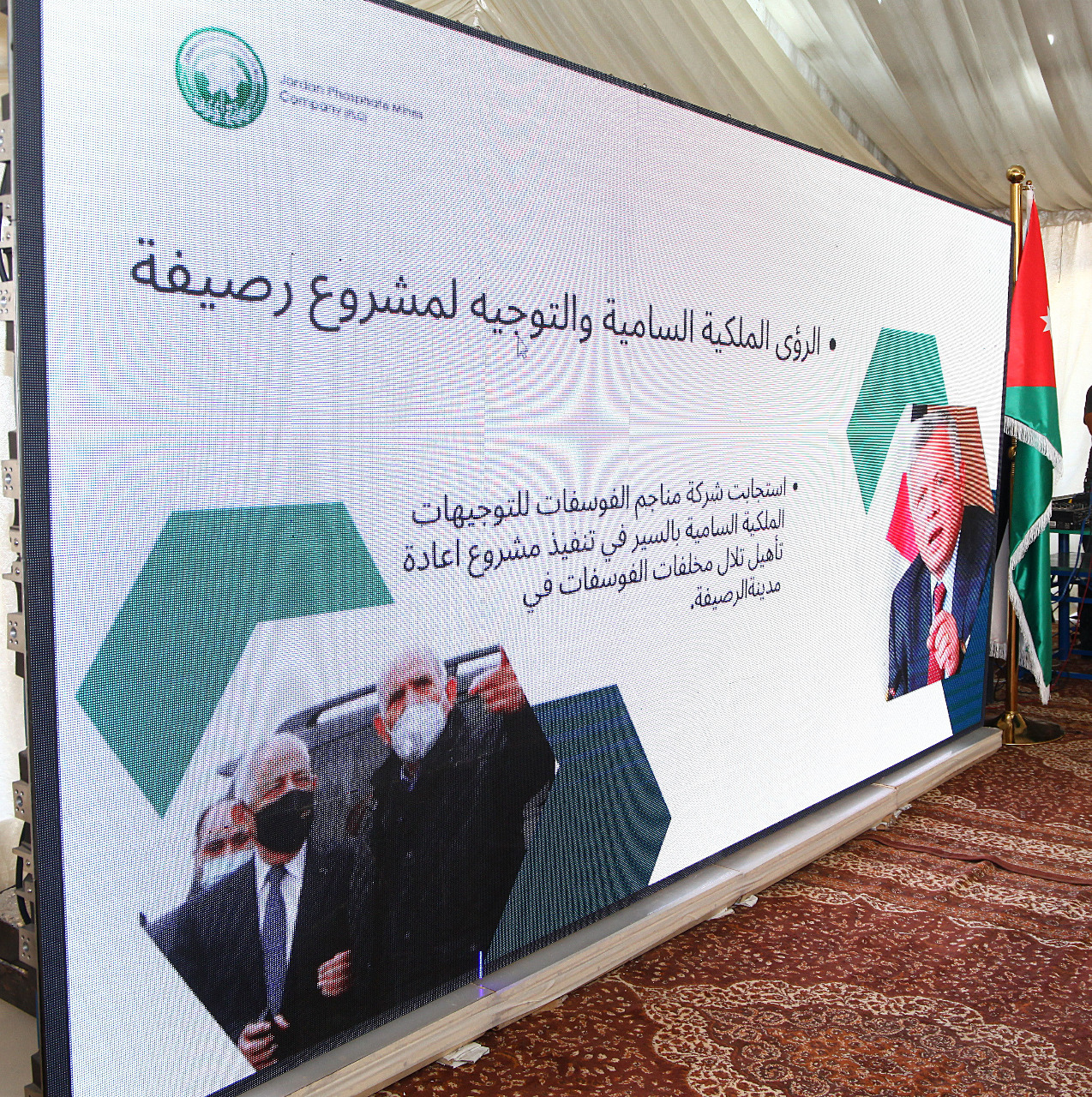 ولفت إلى أن مشروع تأهيل تلال الفوسفات في لواء الرصيفة بمحافظة الزرقاء جاء بمبادرة وتوجيهات ملكية سامية لخدمة سكان اللواء والتخفيف عنهم من التلوث الذي كانت تسببه المخلفات الناجمة عن مشاريع تعدين الفوسفات التي توقفت منذ عام 1985.