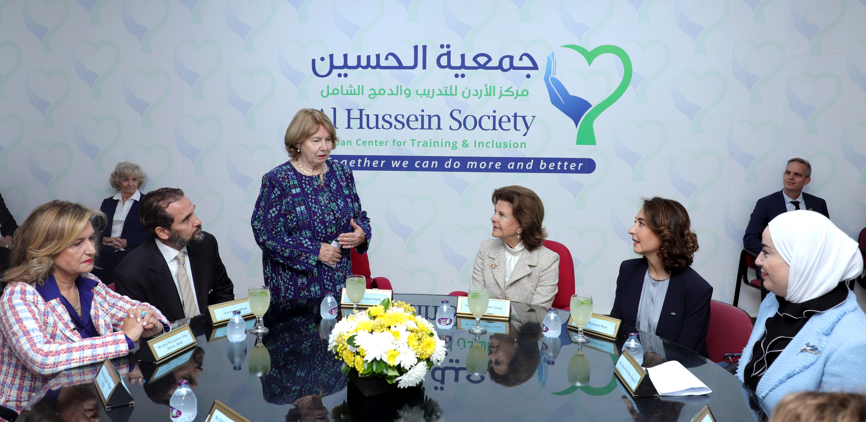 والتقت جلالتها، خلال الزيارة التي رافقها فيها سمو الأميرة ريم علي، رئيسة بعثة الشرف المرافقة لجلالتها، مع سمو الاميرة ماجدة رعد، رئيسة الجمعية وسمو الأمير مرعد بن رعد، رئيس المجلس الأعلى لحقوق الأشخاص ذوي الإعاقة، ووزير التنمية الاجتماعية وفاء بني مصطفى، وأمين عام المجلس الاعلى لحقوق الأشخاص ذوي الإعاقة وممثلين عن عدد من المنظمات المحلية (المؤسسة السويدية ومنصة حبايبنا).