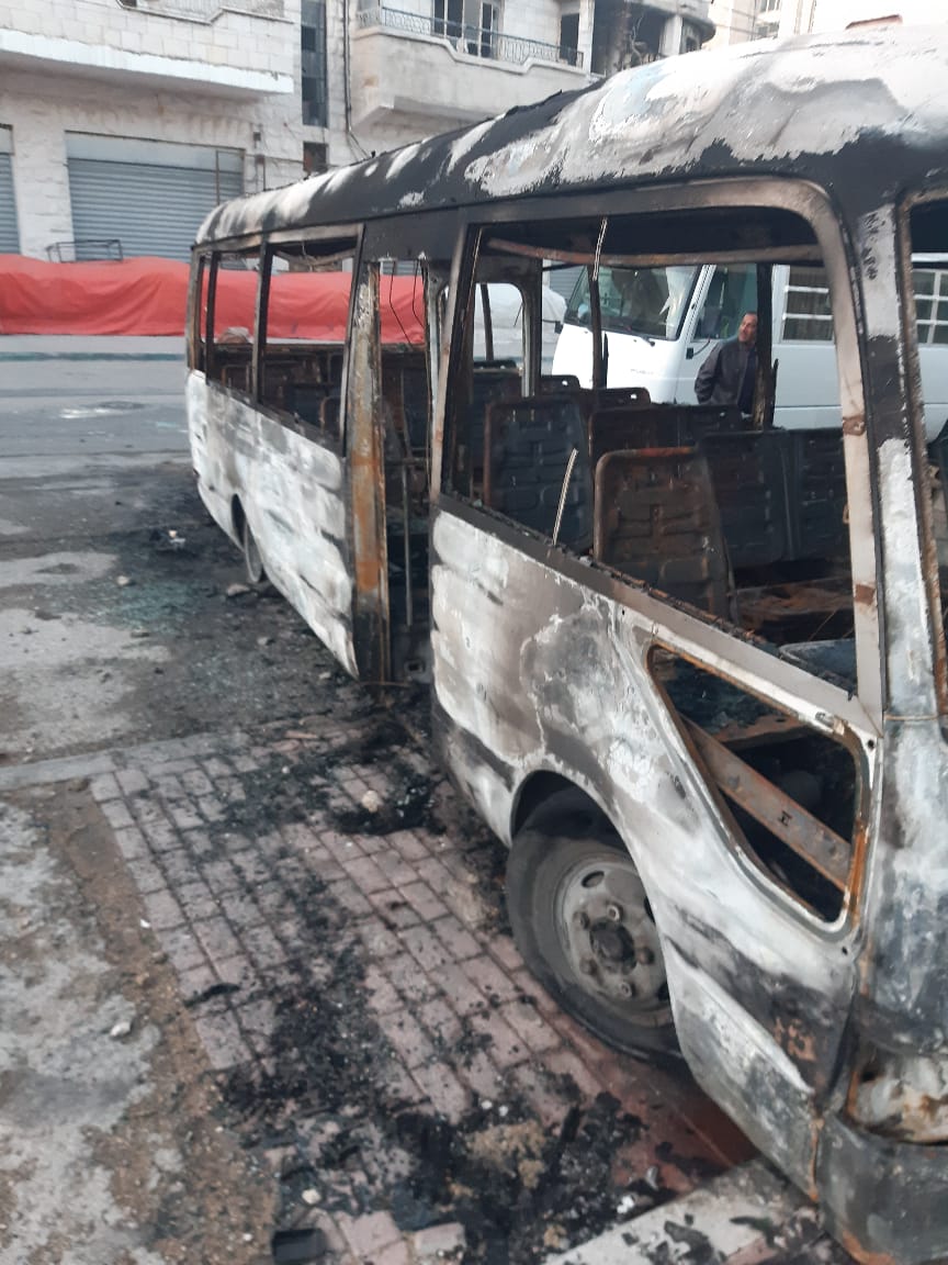 قام عدد من المحتجون بعد منتصف الليل باشعال اطارات تسببت في حرق كامل لاحد باصات التربيه والتعليم لمنطقة الكرك