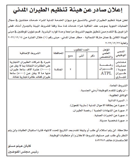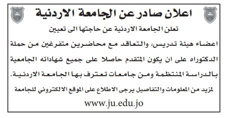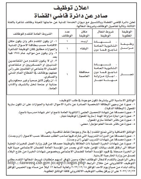 أعلنت عدد من المؤسسات الحكومية اليوم الأربعاء، بالتنسيق مع ديوان الخدمة المدنية، حاجتها لتعيين وتعبئة وظائف شاغرة.