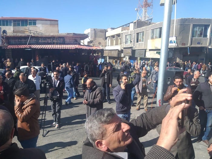 المئات يعتصمون في الكرك والتجار يغلقون محالهم استجابة لدعوة البلدية -صور
