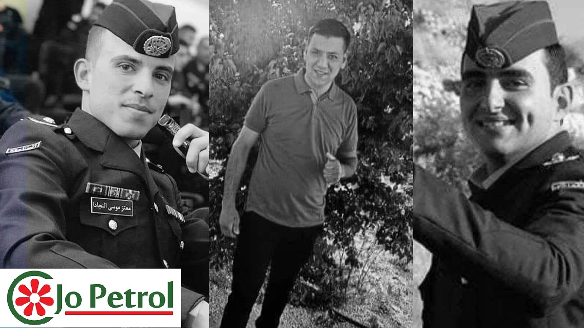 تنعى " شركة تسويق المنتجات البترولية الأردنية"(جوبترول) ممثلة بمجلس إدارتها، ومديرها العام المهندس خالد الزعبي و كافة العاملين فيها بفيض من مشاعر الحزن والأسى شهداء الوطن والواجب من مرتبات الأمن العام