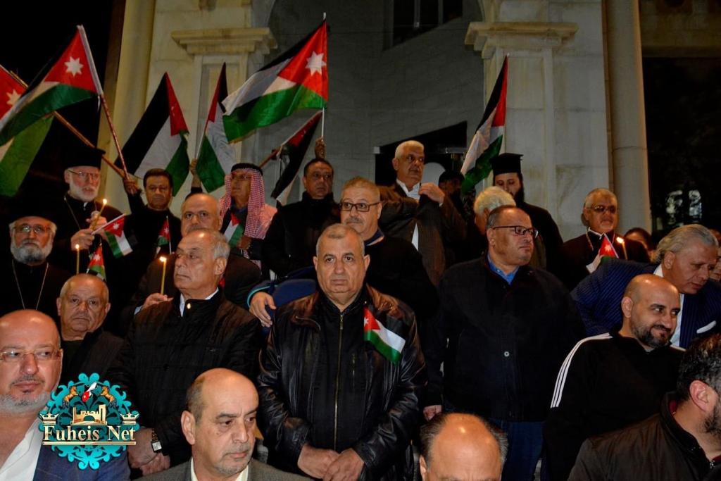 شارك اهالي وابناء ومؤسسات المجتمع المدني والجمعيات الخيرية والعشائرية في مدينة الفحيص / محافظة البلقاء في وقفة تضامنية بدعوة من المجلس البلدي للوقوف صفا واحدا الى جانب والوطن وقيادته واجهزته الامنية ضد الاعمال الاجرامية الهجينة على مجتمعنا مستنكرين الاعمال الارهابية الدخيله والتي ادت الى استشهاد اربعه من خيرة ابناء الامن العام همهم الوحيد حفظ امن واستقرار الوطن