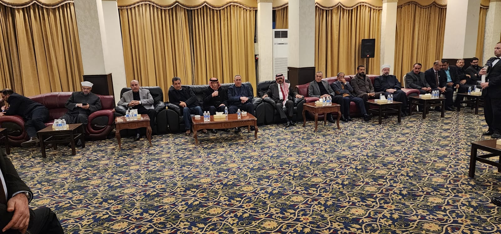 نقل رئيس الديوان الملكي الهاشمي يوسف العيسوي تعازي جلالة الملك عبدالله الثاني للنائب اندريه حواري بوفاة والده المرحوم محمود عبدالجليل العزوني "ابو جهاد".