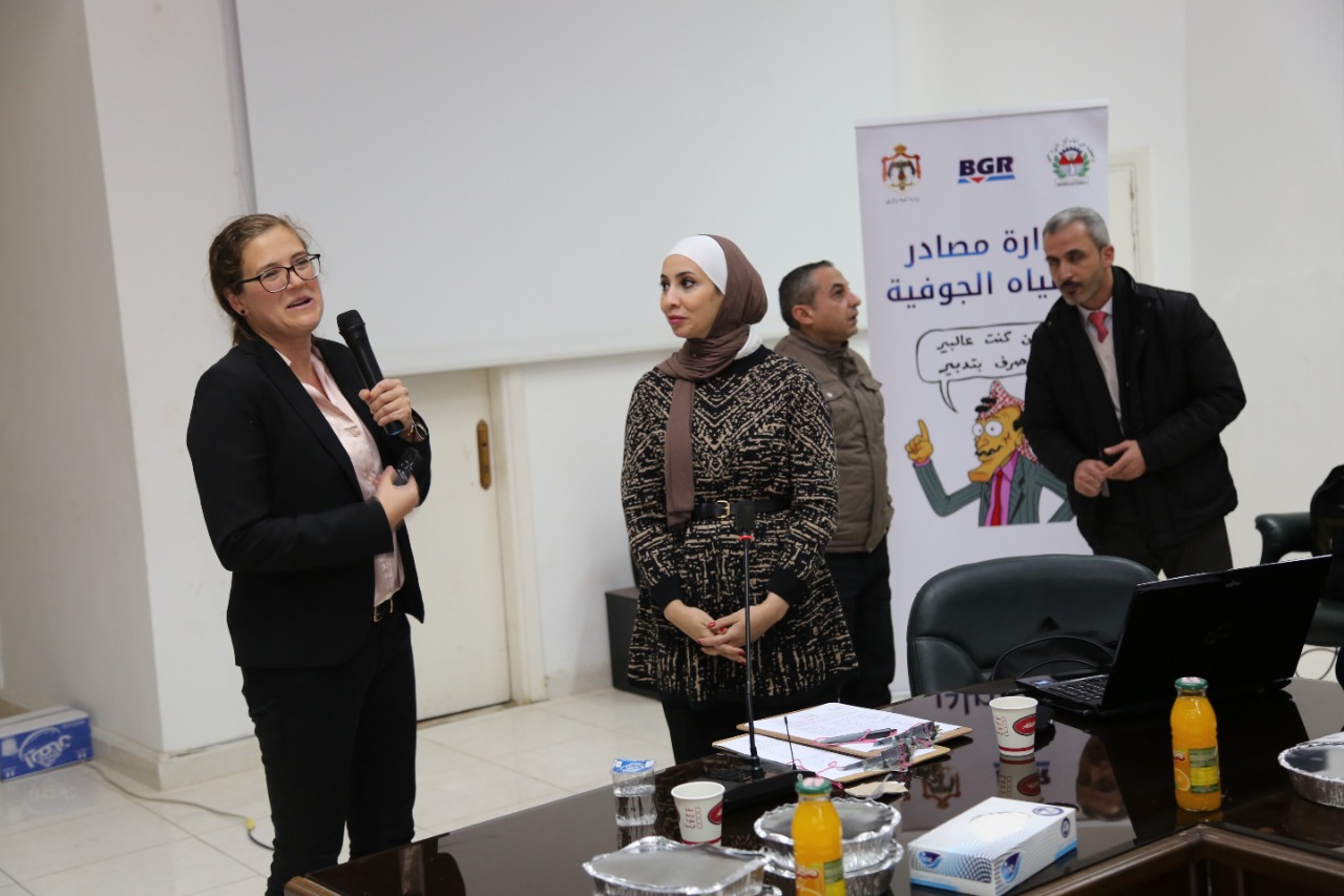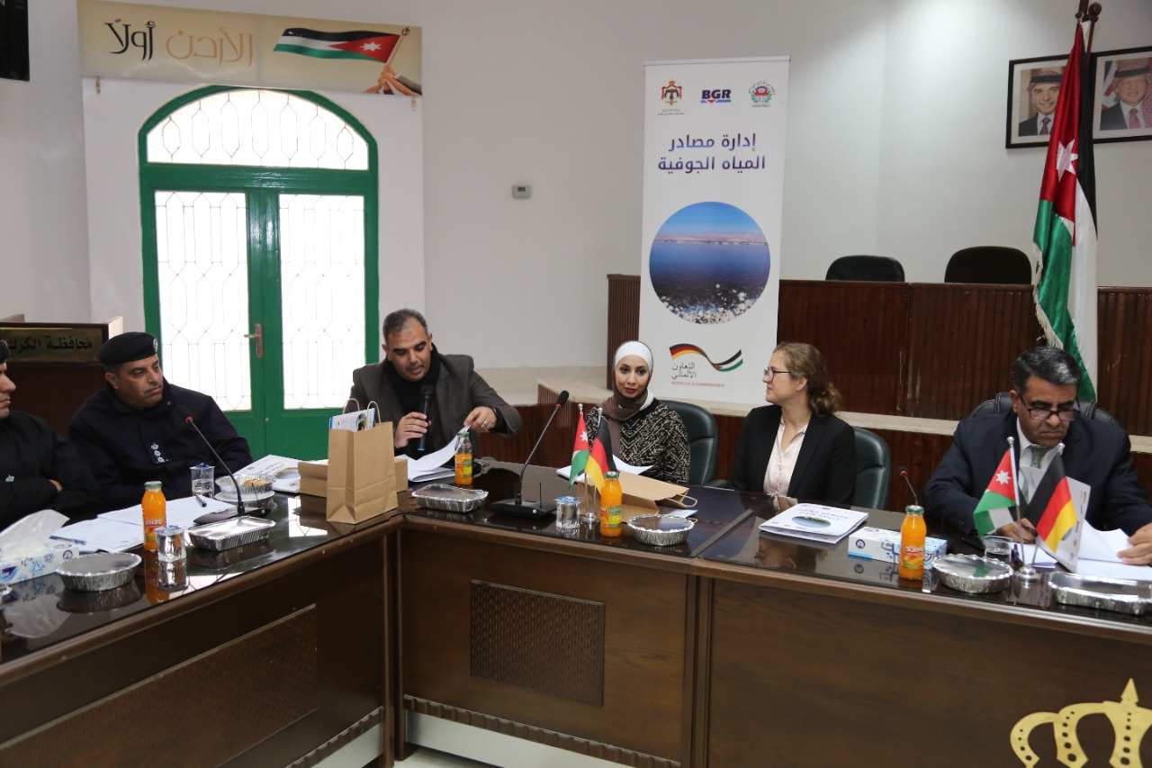 نظمت وزارة المياه والري- سلطة المياه/ شؤون الاعلام والاتصال بحضور محافظ الكرك الدكتور محمد الفايز وعدد من المدراء ورئيس مجلس المحافظة عبدالله العبادله وأعضاء مجلس المحافظة ونائب مدير شرطة المحافظة ومدير مياه الكرك المهندس رشاد العضايلة ومدراء الدوائر الرسمية ورئيس بلدية الكرك المهندس محمد المعايطه وعدد من المعنيين بقطاع المياه وسيدات المجتمع المحلي جلسة توعوية حول واقع المياه في دار محافظة الكرك اليوم الاربعاء 4/1/2023 ضمن برنامج التعاون الفني لمشروع ادارة مصادر المياه الجوفية في الاردن بين وزارة المياه والري والمعهد الفيدرالي الالماني لعلوم الارض والمصادر الطبيعية ال BGR والممول من قبل الوزارة الألمانية للتعاون الاقتصادي والتنميةBMZ ، لتعزيز ثقافة الحصاد المائي والمحافظة على المياه ورفع الوعي بواقع المياه الجوفية وحمايتها.
