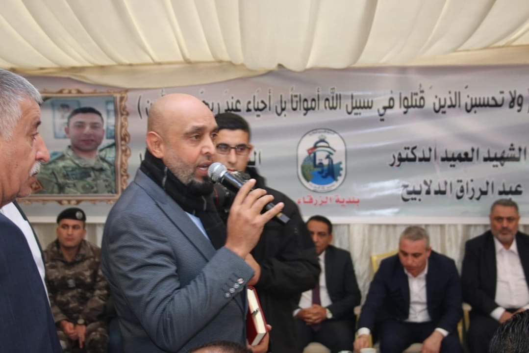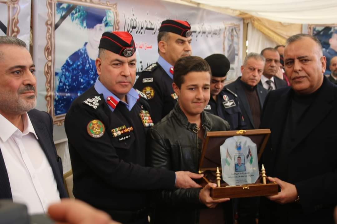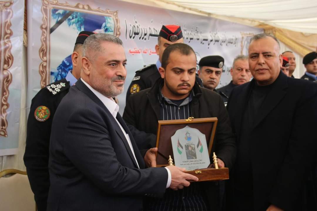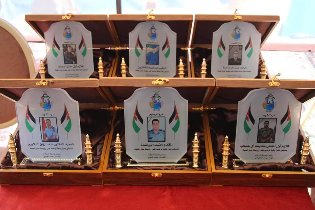 وقال محافظ الزرقاء حسن الجبور ان هذا الاحتفال والتكريم جاء لتخليد اسماء الشهداء والواجب من أبناءنا من جهاز لامن العام الذين رووا بدماءهم الطاهرة والزكية تراب هذا الوطن الغالي وهم يقومون بالتضحية الباسلة وارتقت ارواحهم الطاهرة الى بارءها رب السموات والارض ، وهنا لا يسعنا الا أن نتقدم بجزيل الشكر الى بلدية الزرقاء وكل الدوائر الامنية التي ساهمت في هذا التكريم والمبادرة وهذا ليس غريب على مدينة الزرقاء مدينة العمال والعسكر وهذه الكوكبة من الشهداء سطروا بارواحهم خلال قيامهم بالواجب أسمى معاني التضحية حتى ننعم نحن بالامن والامان وهذه الحادثة والفاجعة أصابت كل بيت أردني ونقول لكل من تسول نفسه العبث باستقرار وامن الوطن ان هذا البلد عصي عن كل مواطن الارهاب وسيبقى الاردن عصي عن كل الاعمال العبثية ولارهابية وسيبقى صامدا صمود الجبال بفضل القيادة الهاشمية الحكيمه وحما الله الوطن والملك والاسرة الهاشمية والاردن الغالي على قلوبنا جميع.